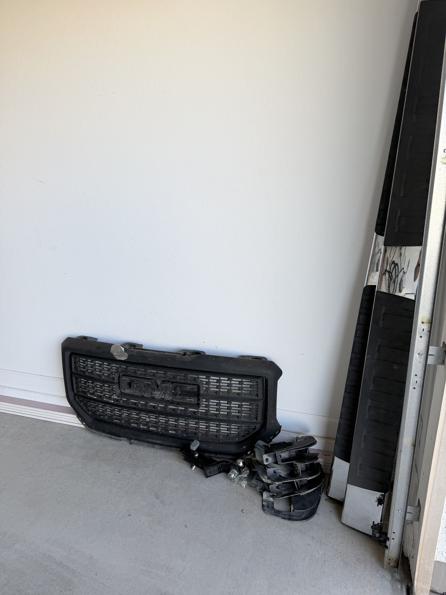 Selling original factory (OEM) takeoff parts from a 2016 GMC Sierra 1500 Denali. These are high-quality original parts, not cheap aftermarket replicas. They should fit most GMC Sierra 1500 models from 2014–2018. 1. OEM Front Grille (Black Mesh Style) • Style: Sleek black mesh with GMC emblem and chrome-accented frame. • Condition: All mounting tabs are solid and intact. Note: There is a minor cosmetic scuff on the top driver-side corner (see photos), otherwise very clean. 2. OEM 6-Inch Chrome Side Steps (Running Boards) • Style: Heavy-duty rectangular fixed steps with slip-resistant pads. • Length: Fits Crew Cab models (4 full doors). • Hardware: INCLUDES all 6 original mounting brackets and bolts. Ready to bolt on in 20 minutes. PRICING • Bundle Price: $475 (Will take $425 if you take both today). • Individual: $225 for Grille | $325 for Side Steps with hardware.