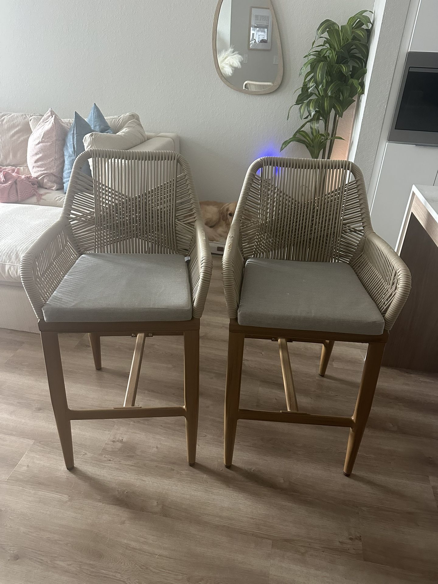 PURPLE LEAF Outdoor 24" Counter Height Bar Stools Chair Set of 2, All Weather Rattan and Aluminum Patio Bar Stool with Cushion for Indoor and Outdoor, Kitchen Island, Teak. Never used!! Did not fit correctly for counter and are back in the box. Was unable to return so am now selling.