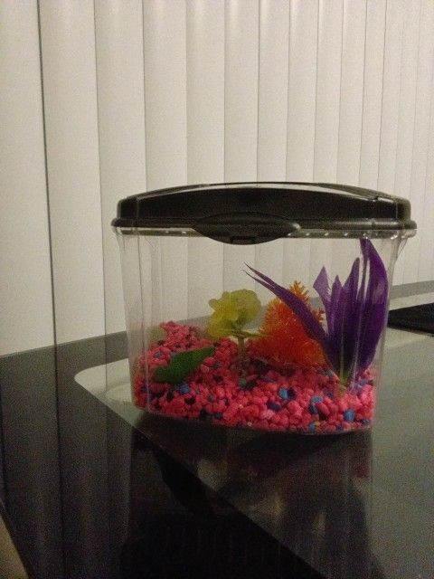 Very good for betta fish. 7 inches width. 7 inches height. 21 inches all around. Decor is included.