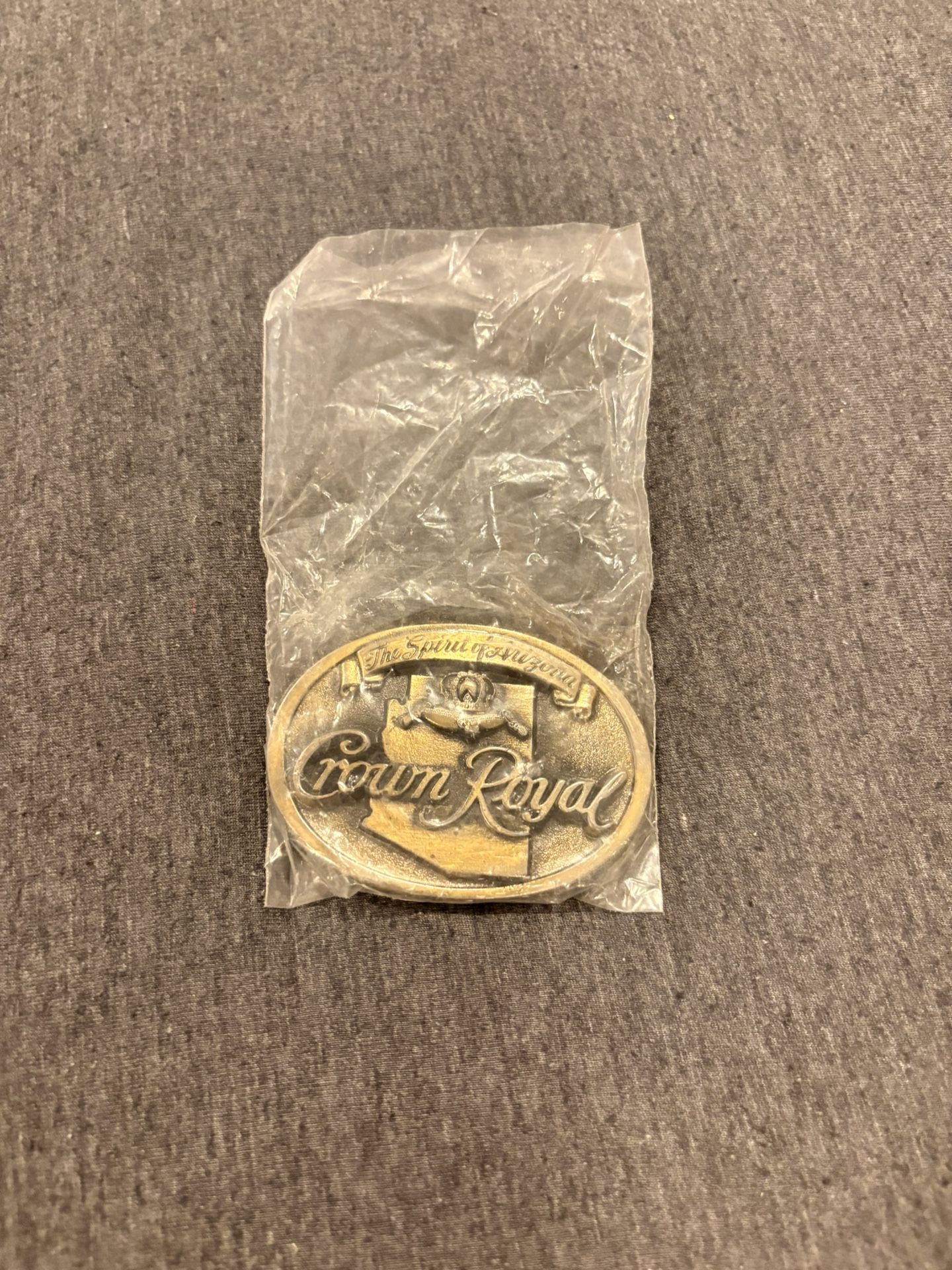 Vintage solid brass Crown Royal Belt Buckle The Spirit Of Texas Brass