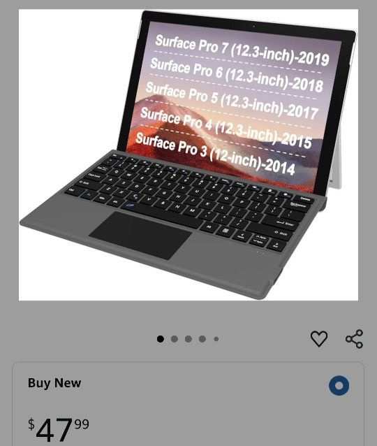 Make Surface Pro Like a Laptop: The keyboard is physically attached to Surface Pro via magnetic like a laptop and the connection is though Bluetooth. After the Bluetooth is connected, mechanical keys and touchpad simply make you like using a laptop. This keyboard is suitable for Surface 12.3-inch Pro 7, Pro 6, Pro 5, Pro 4, Pro 3 Bluetooth Keyboard: Mechanical keys and extra-large trackpad make surface pro more useful with typing, navigation and control. Slim and compact, yet performs like a traditional, full-size keyboard. Functional Media Keys and touchpad: Enjoy the easily control of your Surface Pro with the touchpad and the media hot keys. Charge up in 1 hour and enjoy 50 hours of uninterrupted use.