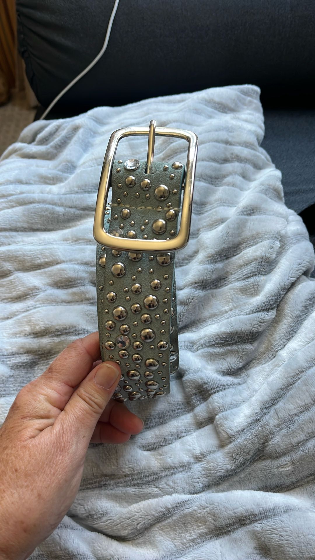 Light blue studded belt, 40 inches long. Clear and silver studs. Belt never worn. OBO