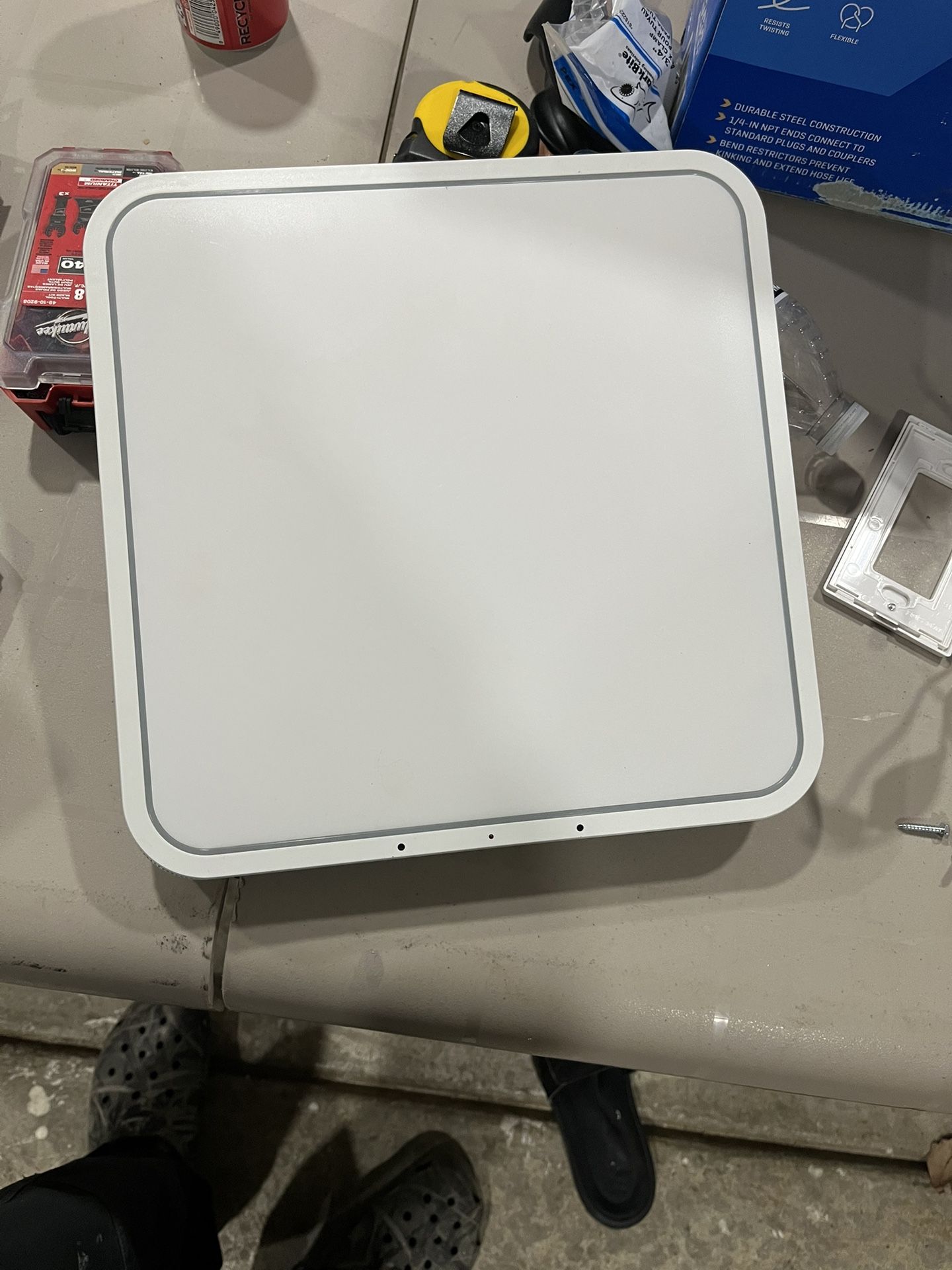 Blue tooth speaker/ light/ Alexa exhaust fan. In working order. Needs mounting bracket. Missing one side of mounting bracket. 110 CFM LED Ceiling Mounted Bathroom Exhaust Fan with Alexa Voice Assistant and Bluetooth Speakers