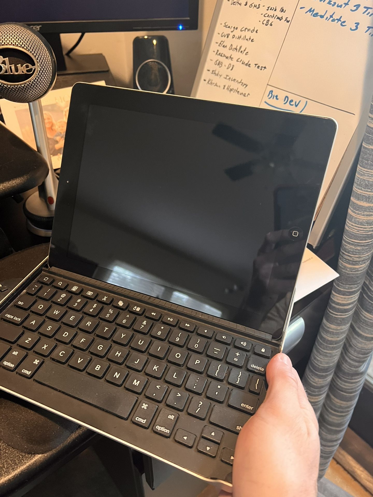 iPad 32 gb with Logitech Bluetooth keyboard case.