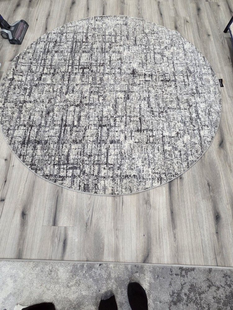 This item is located in Medford Only 6 months old, in excellent condition. 6' Round Calvin Klein Gray Rug..Front and extremely clean home. Serious buyers only please must pick up. Cash only, please bring exact amount. No Holds