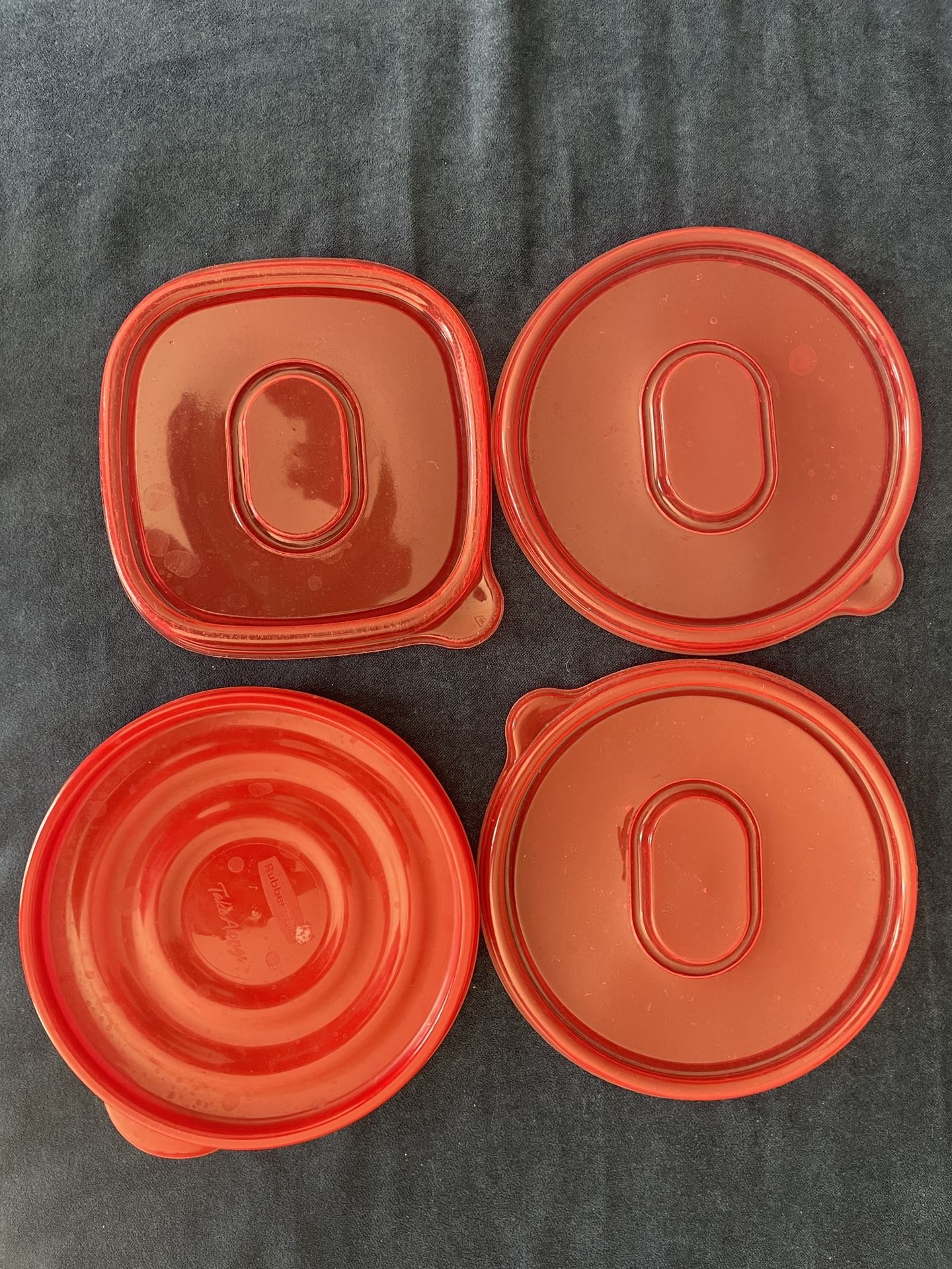 4 Plastic Lids For Storage Containers - Red - Square/Rectangular/ Round - Rubbermaid Take Alongs