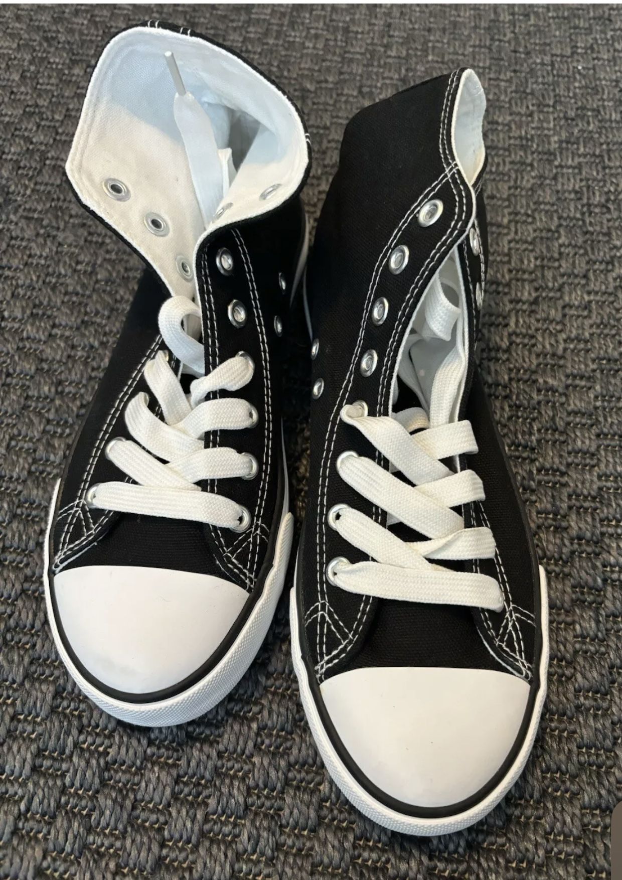 Brand new women’s black canvas high-top shoes, size 7. Stylish and versatile, perfect for casual wear. Please note: These are not Converse sneakers and do not come with a box. Model number - X002K548F7 $18