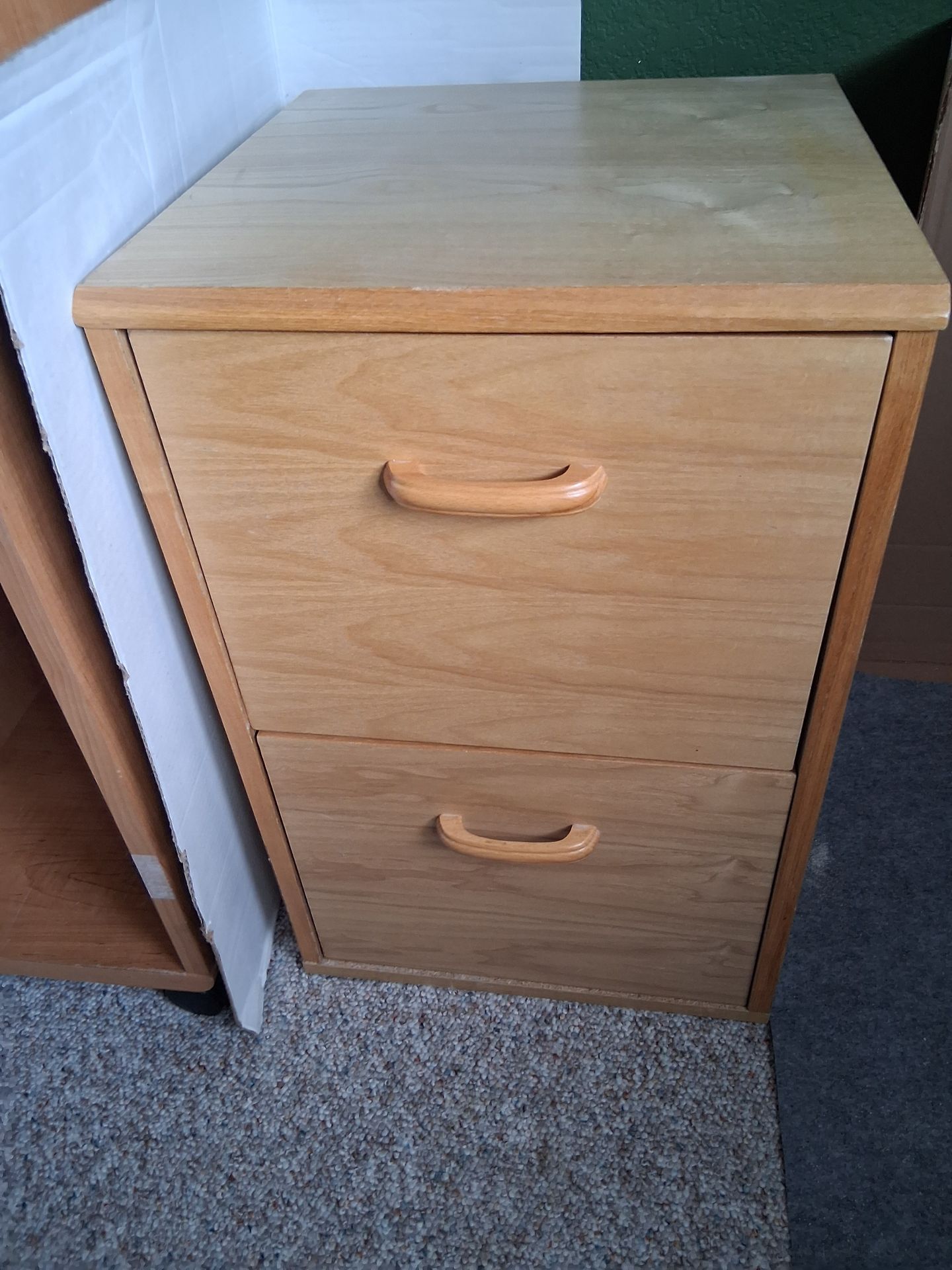 Desk- Minor damage on top of desk Width-35" Depth-20" Height-30" File cabinet Width-16" Depth-16" Height-24"