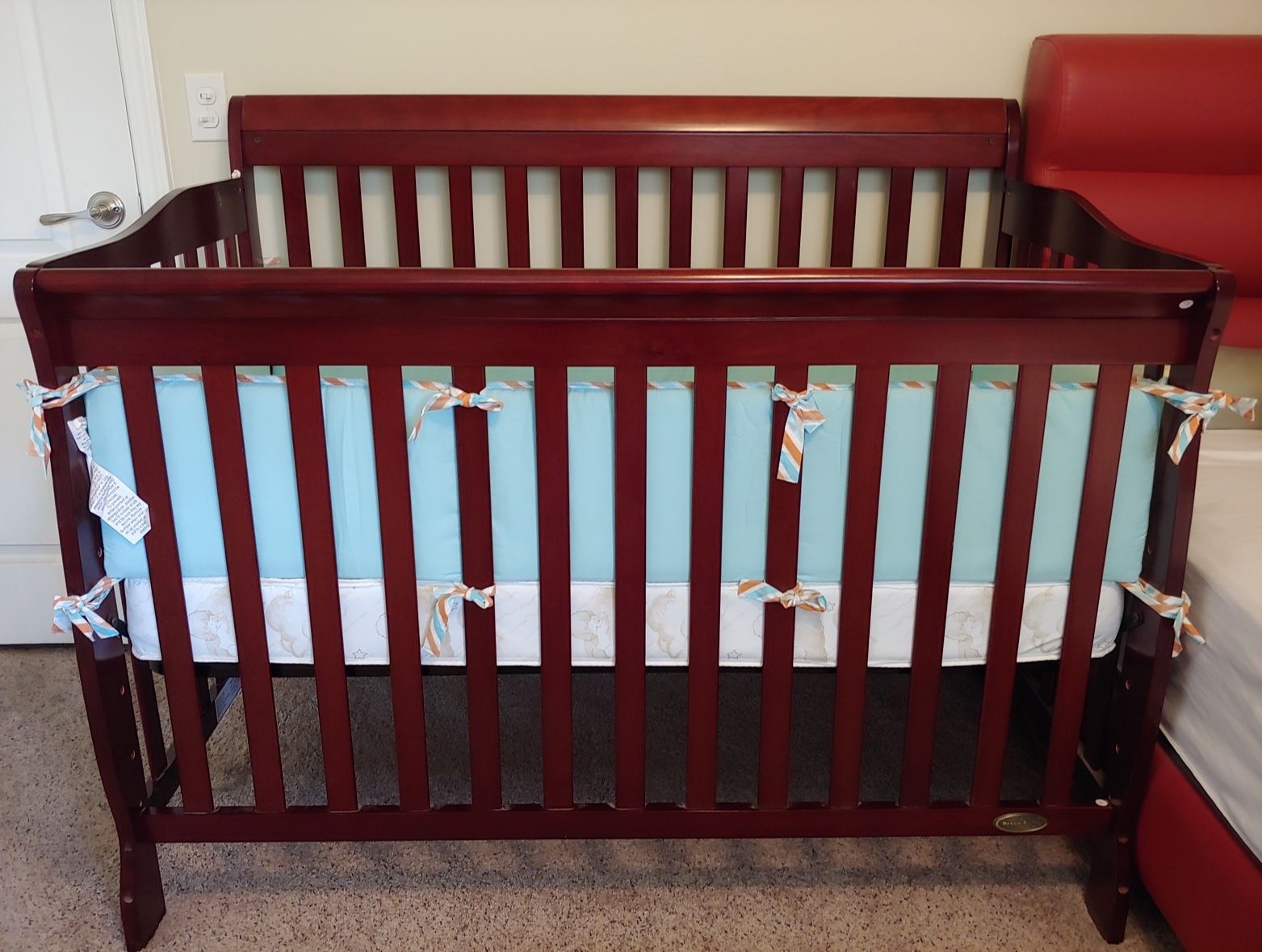 Convertible crib with mattress and liners. Never use, like brand new