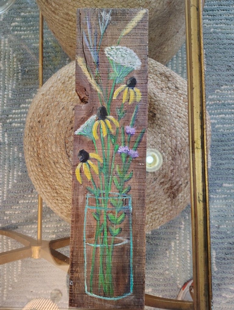 Painted Wildflowers On Rustic Wood Ready To Hang