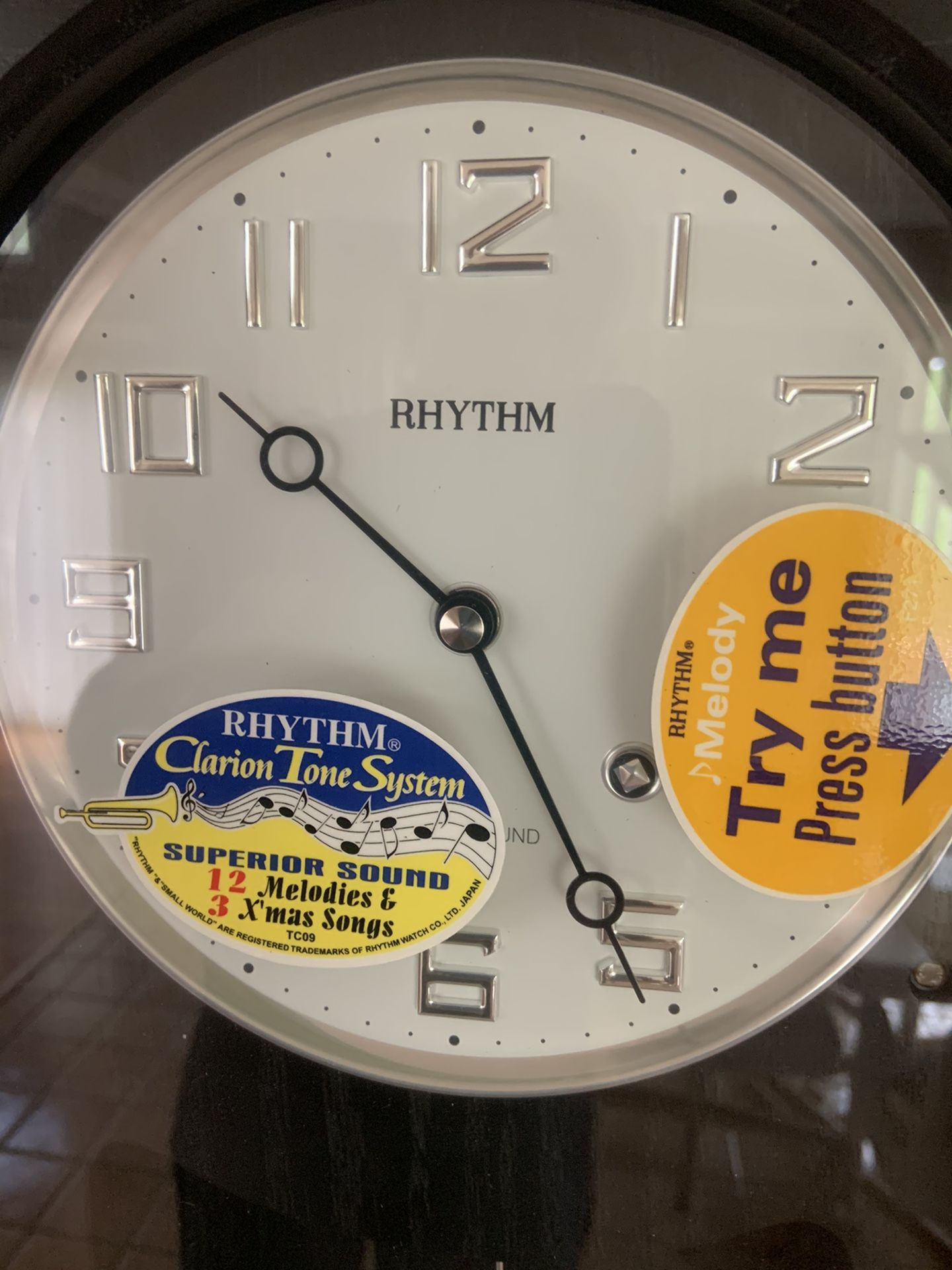 Rhythm clock with 12 melodies and three Christmas melodies brand new still in the box. Cost over 150