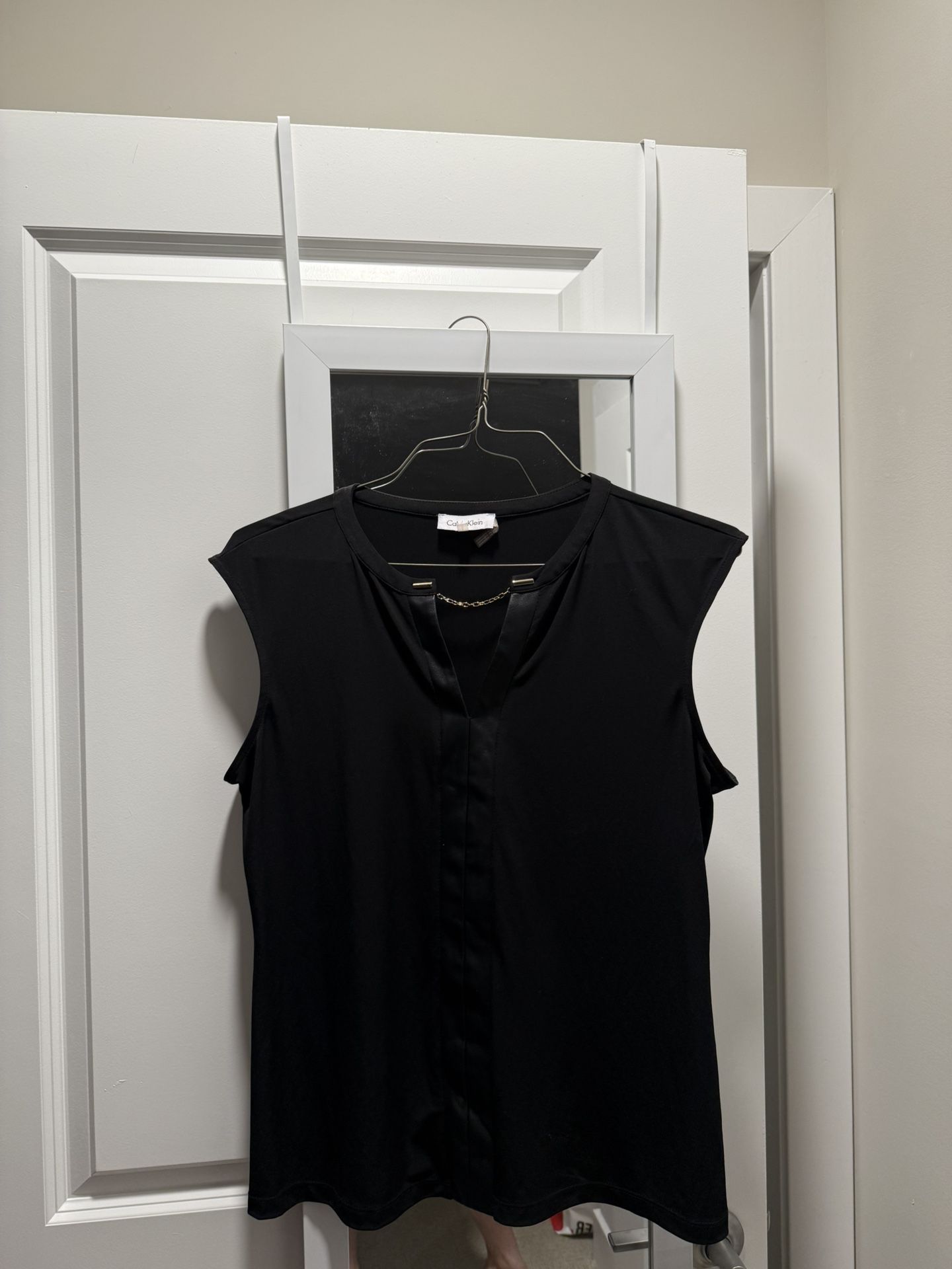 Calvin Klein Black blouse with faux leather trim size large