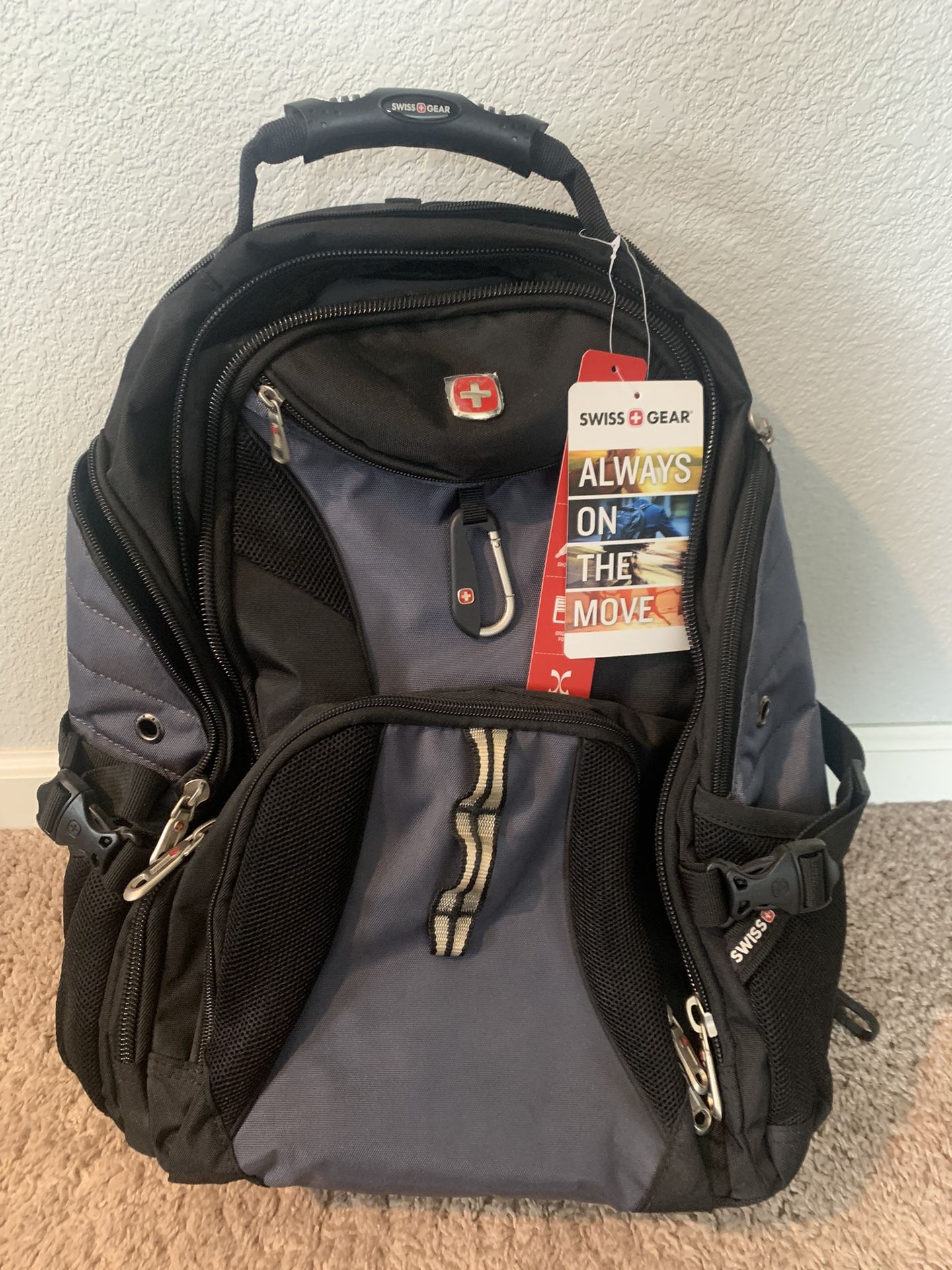 Brand new Swiss gear smart scan backpack. Never used. Still has all the tags on it. It’s black and slate blue. The picture looks slightly purple but it’s just the lighting and camera. It’s more slate blue. $70 obo