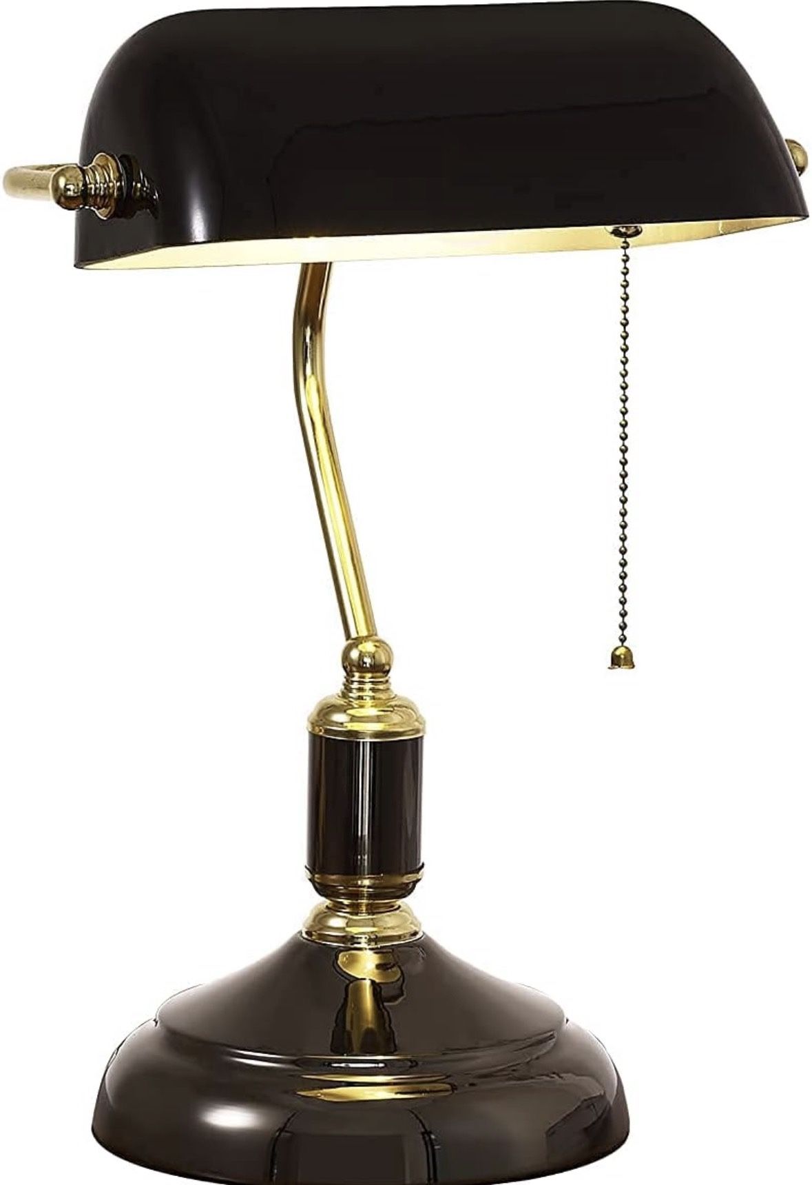 Traditional Bankers Lamp, Black lamp Shade,with Pull Chain Switch Plug in Fixture,Vintage Office Table Light, Antique Style Desk Lamps for Office, Lib