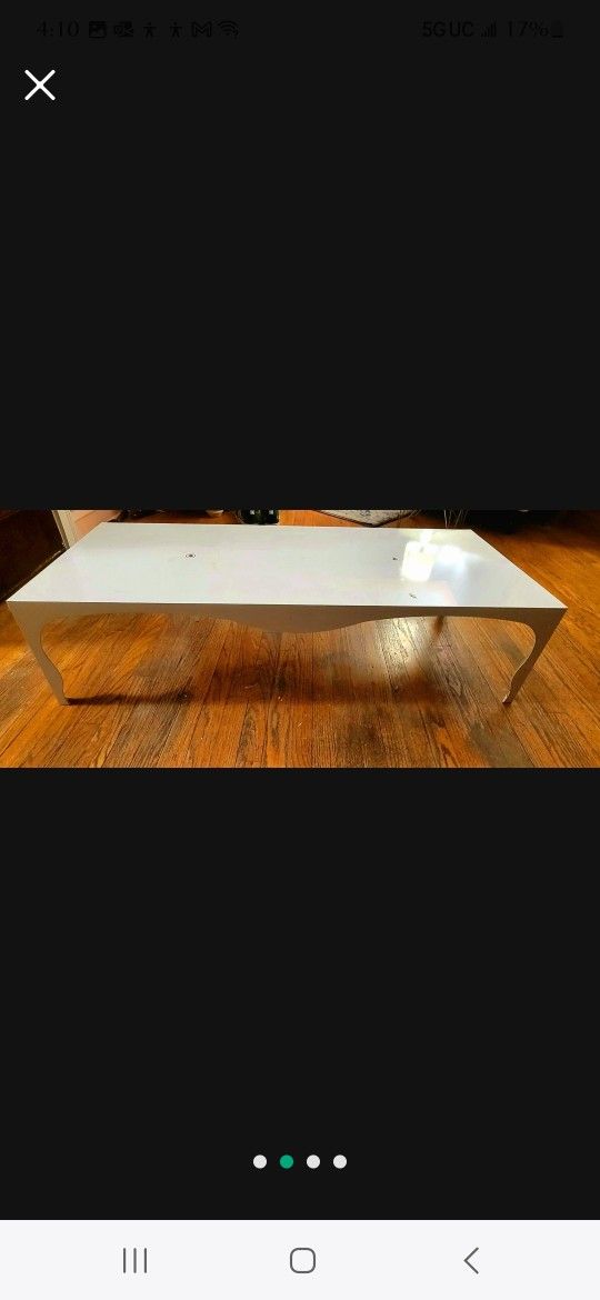metal white coffee table, dimensions avail. not very heavy. 75obo$