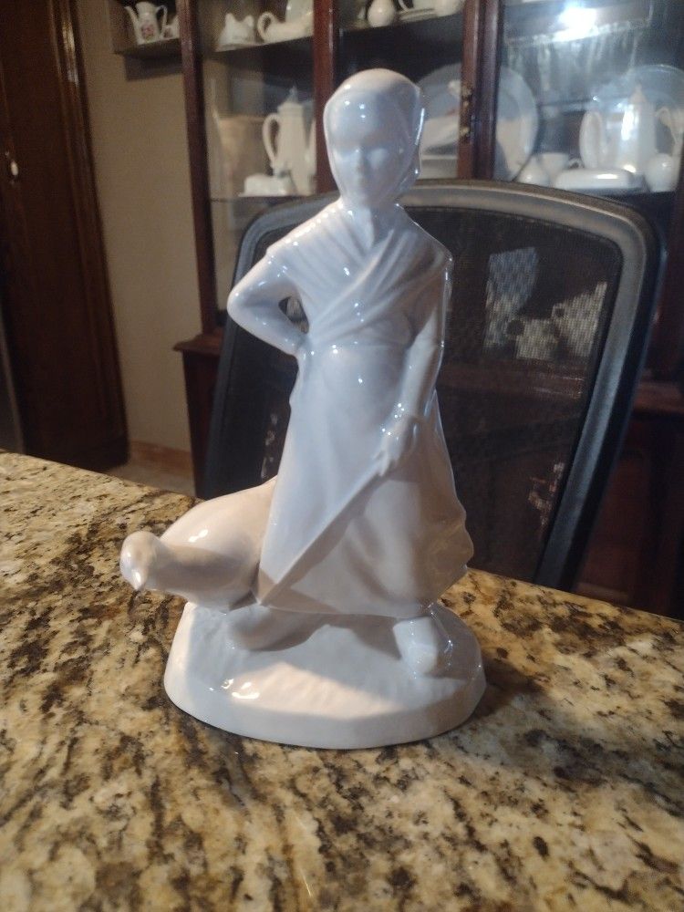 Vintage 1975 Ceramic Girl With Goose 8"Tall 59 North Houston TX 77016