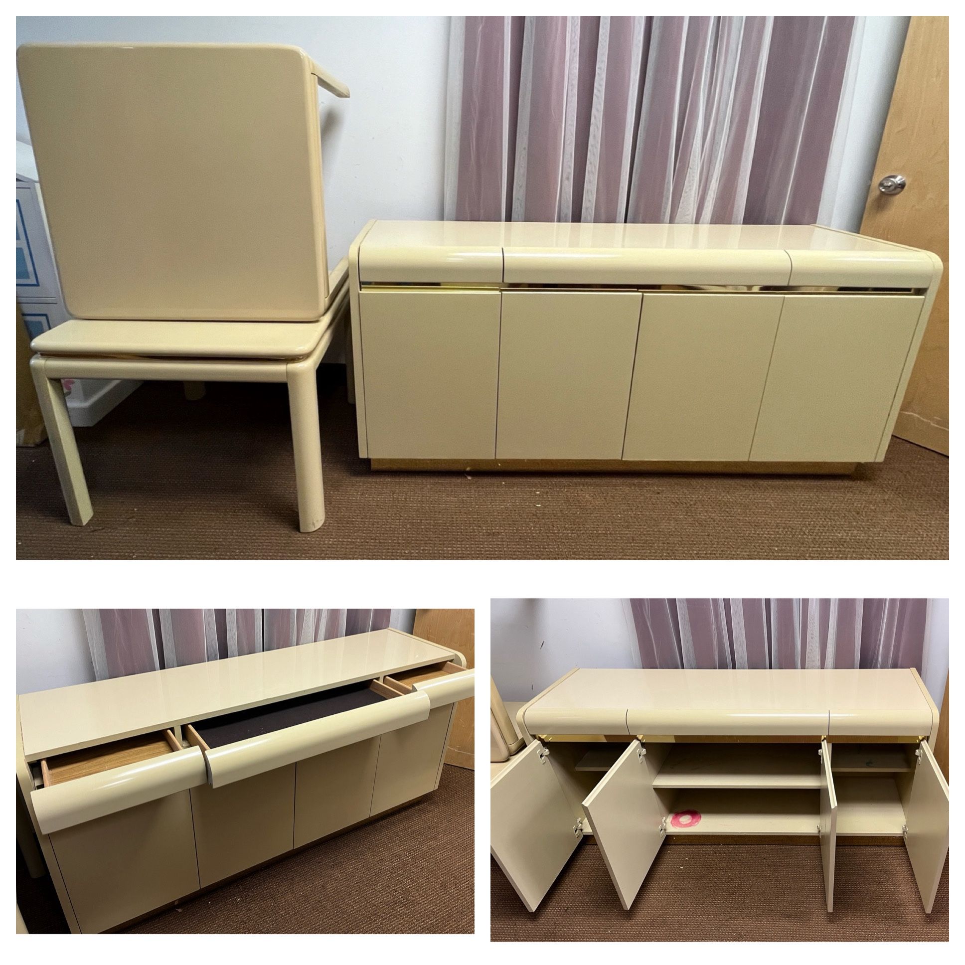 Vintage sideboard buffet cream lacquered Lane credenza $49 and 2 matching end side accent tables $25ea