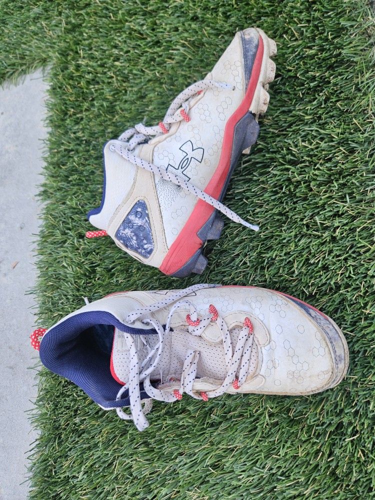 White Bryce Harper Cleats. Size 2.5, Rubber Soled. Under Armour. Used for 1 season of Little League.