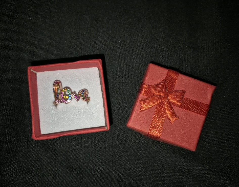 Rose Gold multicolor "Love" Ring Size 6 New from JcPenny