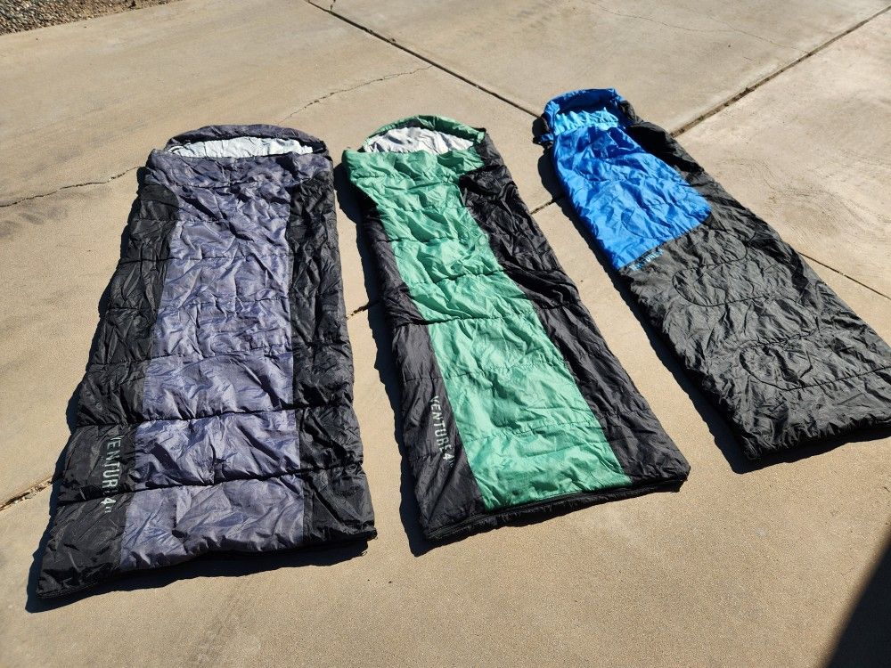 Venture 4th lightweight 3-season camping sleeping bags. Features a water-repellent design for moisture protection and generous hood with a drawstring, (3) available, $20/each, **pick up near 83rd Ave and Deer Valley Rd