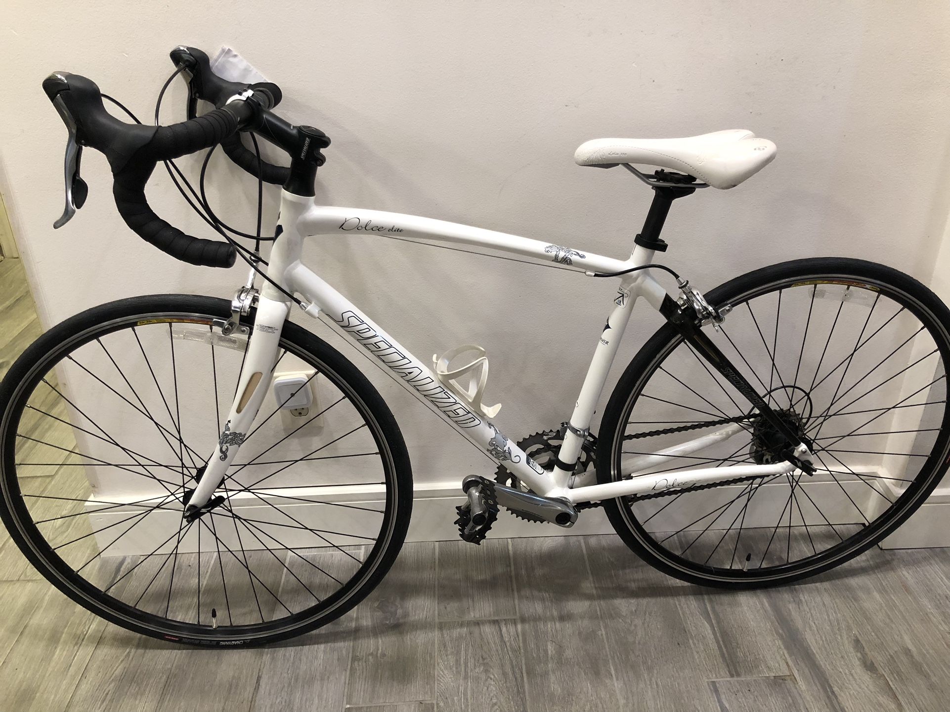 Specialized Dolce Elite in fabulous condition Aluminum frame with carbon fork, Carbon seat-stays and seat post, frame size is 54cm, Brand New 700x25c tires with new tubes. 2x9gearing with Shimano Tiagra components. This bike has been cleaned tuned has bar wrap and rear brake cable. looks Great and you could ride it home. if you can see this ad it’s still for sale not sure how old it is or how much it weighs pick up in Winter Springs. If you decide to purchase the bike and have no way to get it home I may be able to help. Thanks