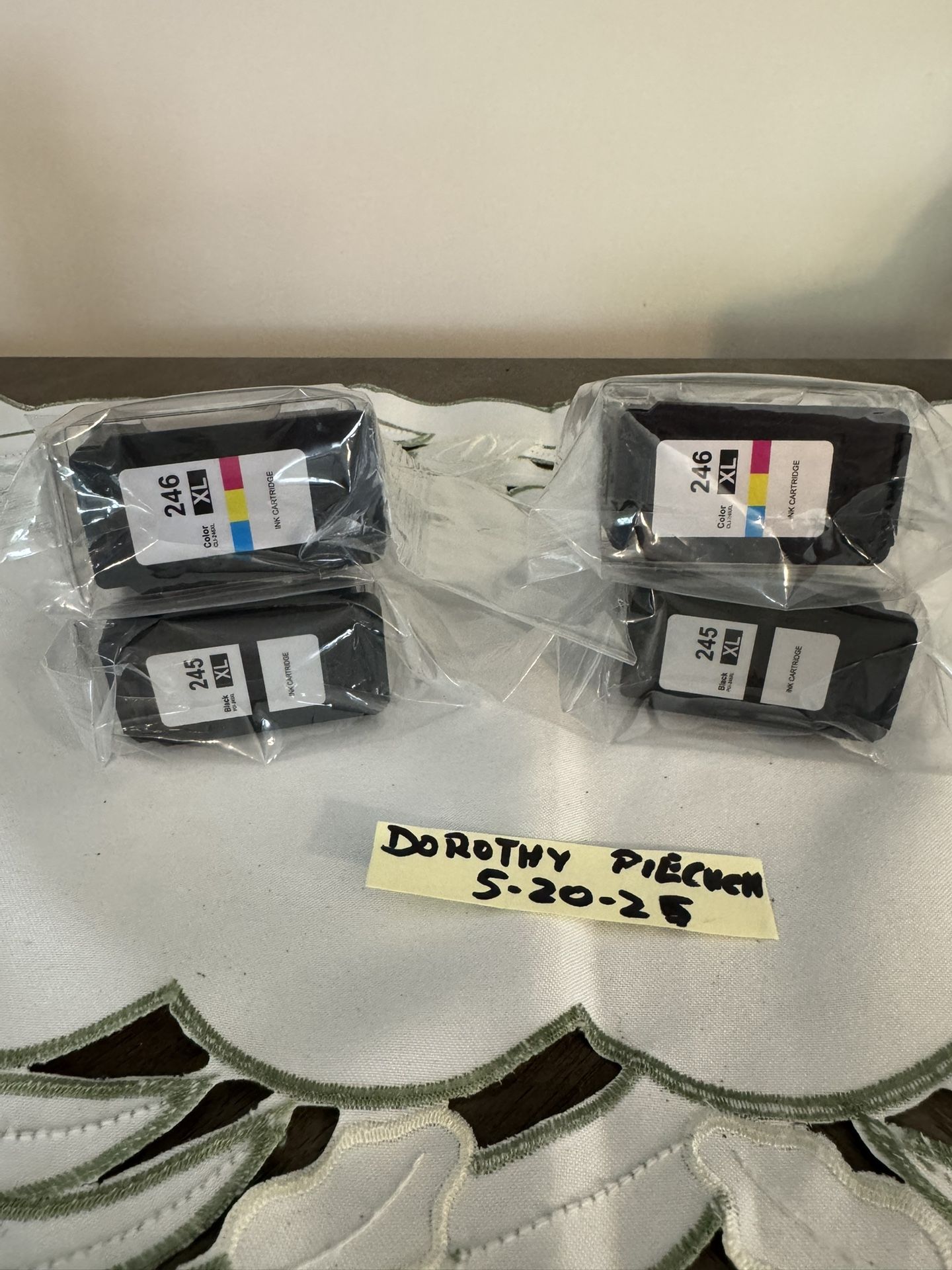 NEW Canon ink cartridges for sale. It includes 2 black cartridges (245XL) and 2 color cartridges (246XL) which contain yellow, magenta, and cyan. In original sealed packaging, new! These are high yield cartridges which will print more pages than the regular cartridges. This is a steal! Saves you money! See photos. As is, no returns. Shipping available or pick up in or near New Lenox, IL