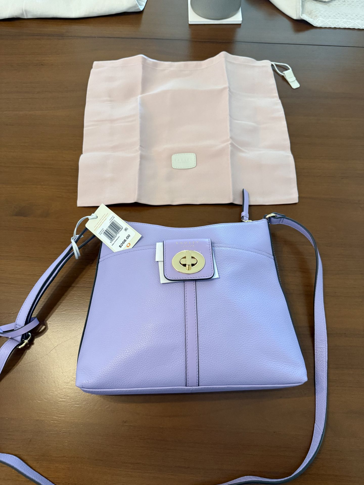 New! Never used. Lavender crossbody bag. Has additional zipper storage inside. Tag still on with price of $268.