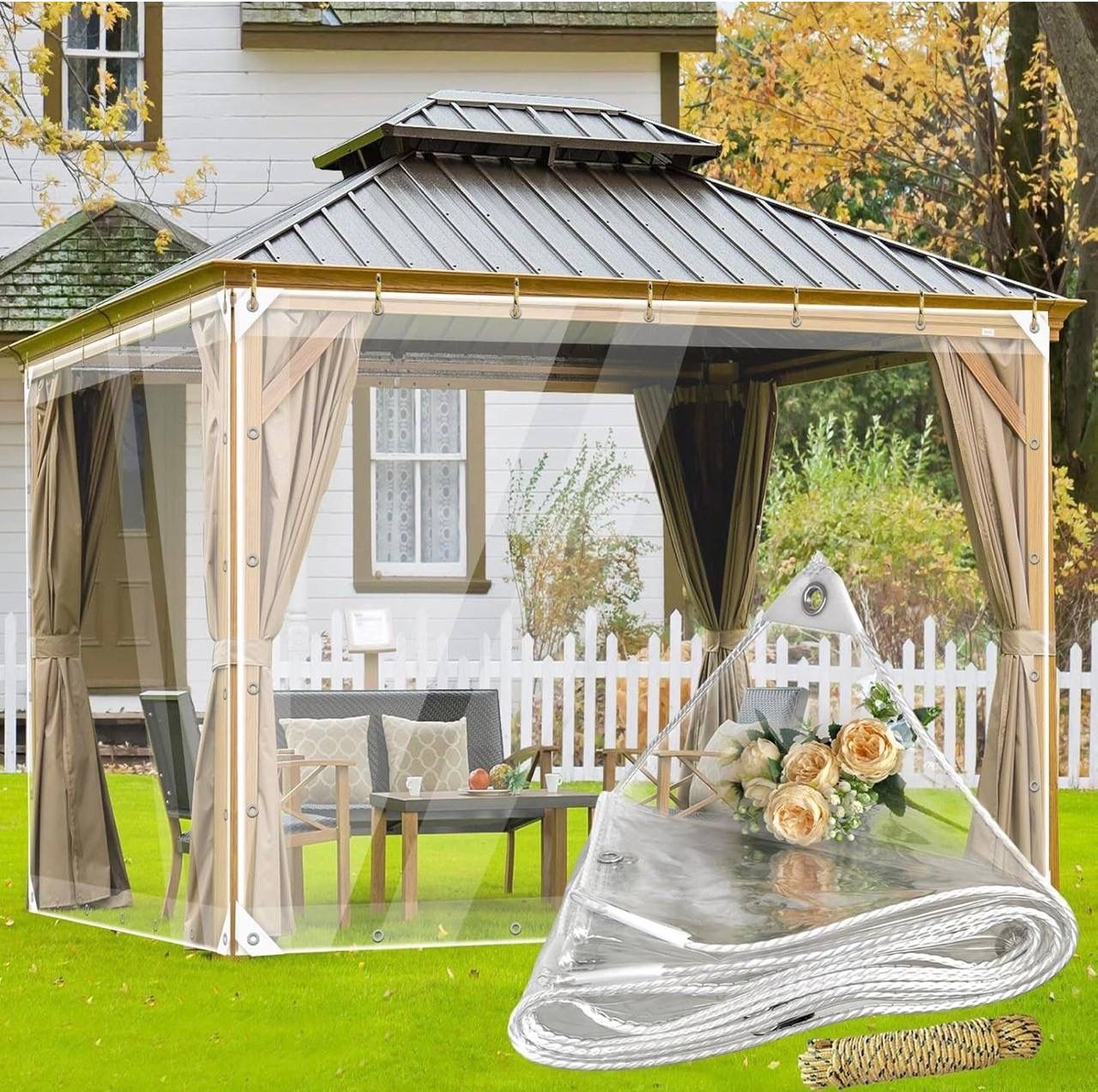 2 Pack 3.3' x 8.2' Clear Tarp, Transparent Tarp Heavy Duty Waterproof with Grommets, Reinforced Edges are Durable, Thick and Tear-Resistant, Multipurpose Greenhouse, Outdoor Porches, Nursery, Etc, with one robe.