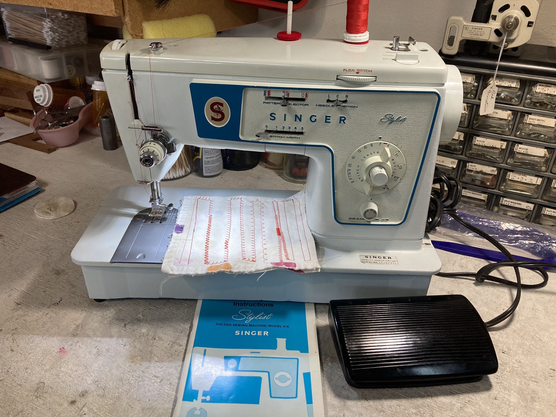 Vintage sewing machine with foot pedal and Instruction Manual. Fully serviced, tested and ready to sew. No carry case.