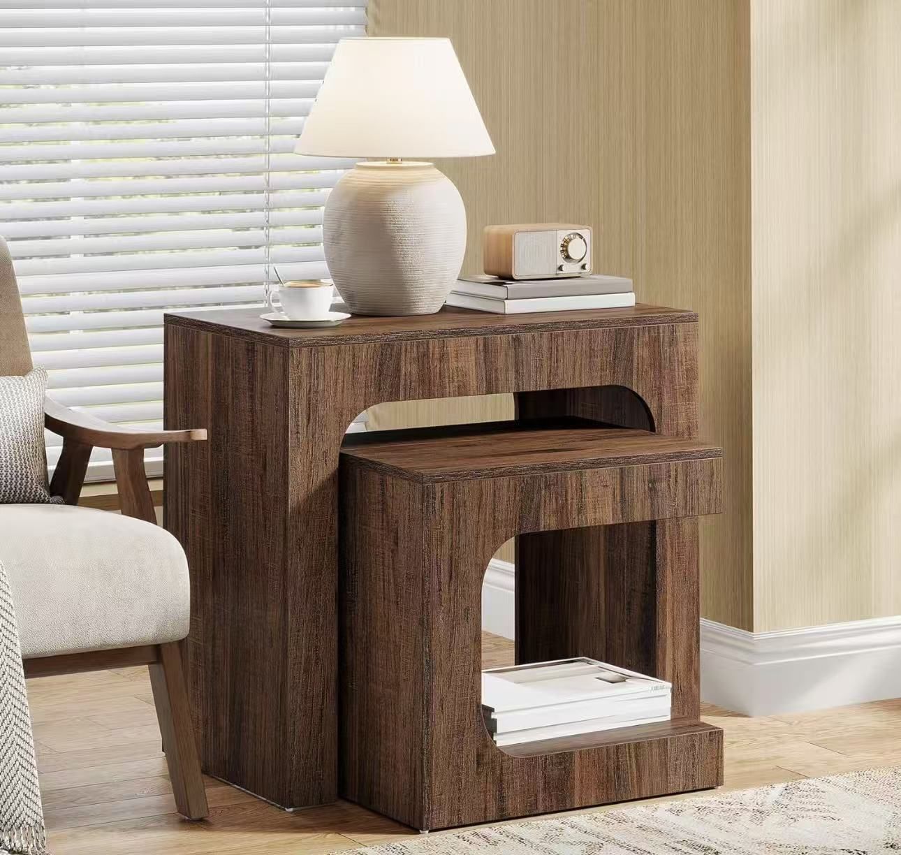JW1073 Nesting End Table Set, Walnut Side Table for Living Room, Night Stand Set for Bedroom, Small Spaces, Brown