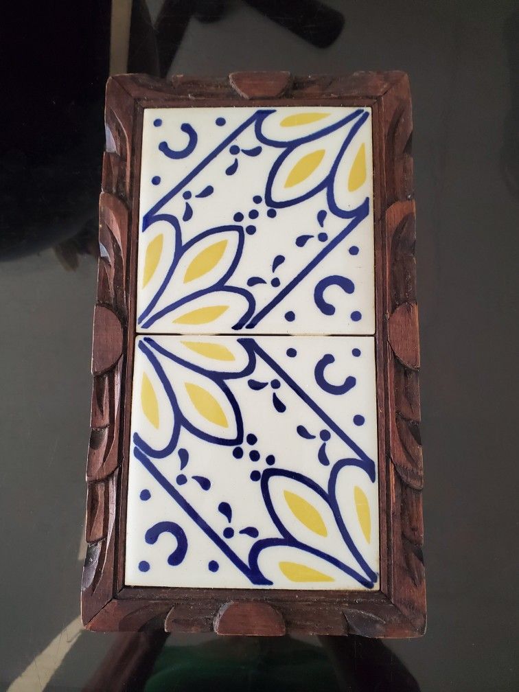 Carved Wood Ceramic Tiles Trivet