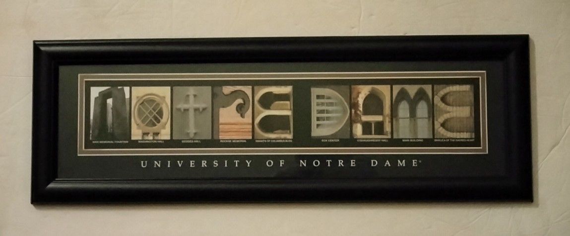 University of Notre Dame 24" x 8" Architecture Artwork. Exceptional Condition. See All Photos. Perfect For The True Fan of The Fighting Irish! Enjoy See All Our Listings For A Variety of Quality Items For Adults, Children, and Pets. Questions? Please Ask Pet Free, Health Conscious Home Be Safe and Kind Always