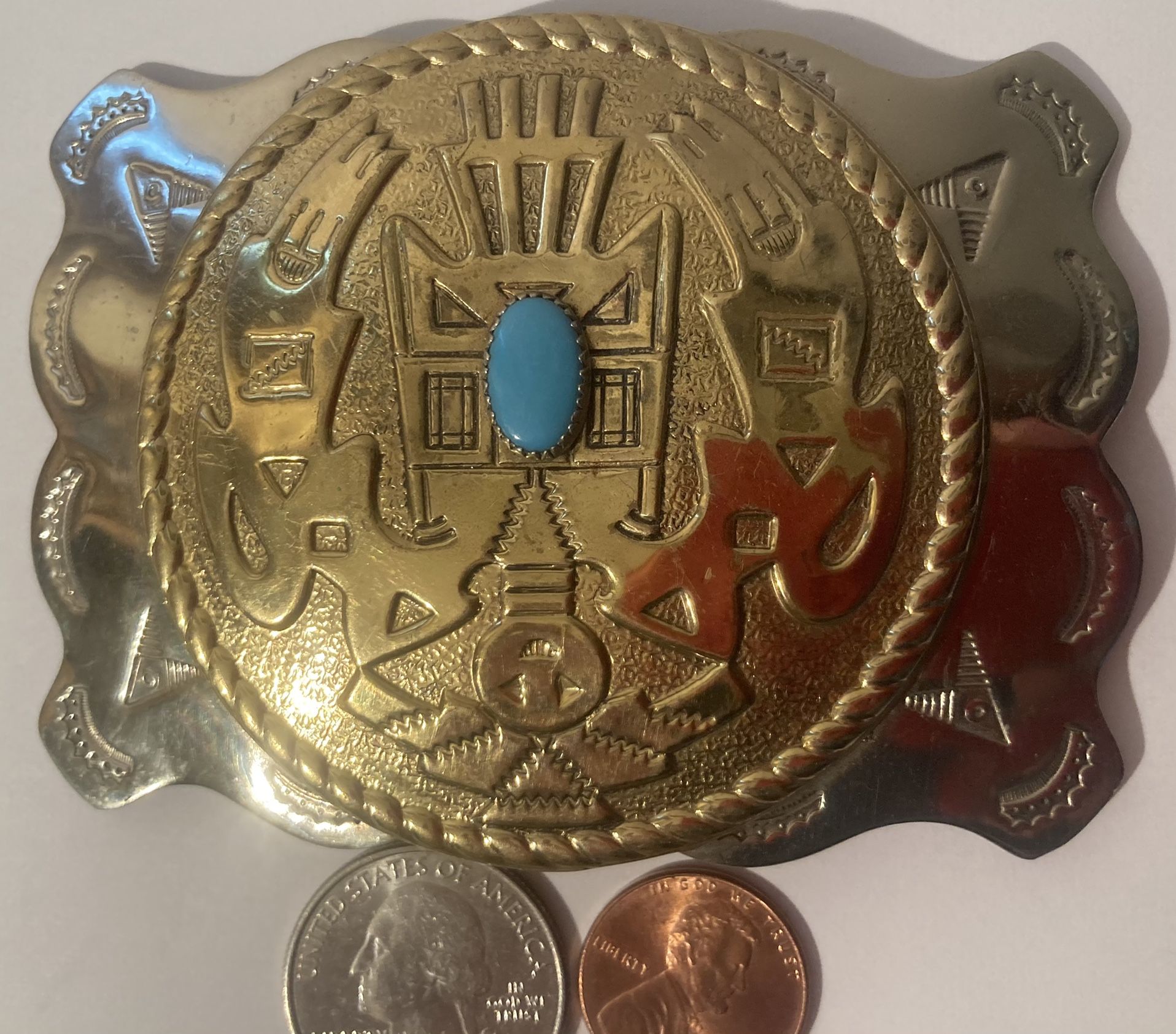 Vintage Belt Buckle Nickel Silver And Turquoise