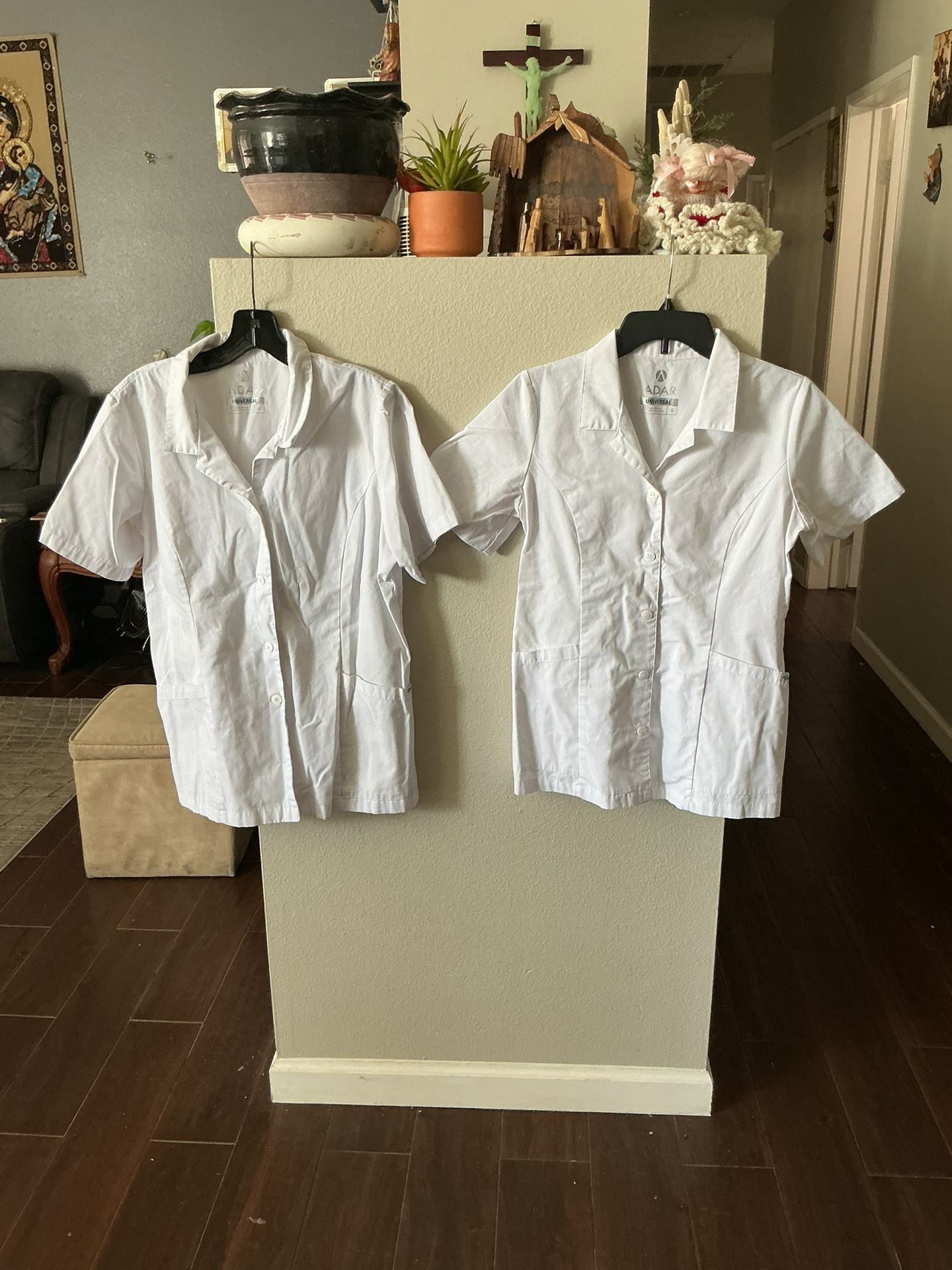 Two universal Adar white short coat one size large, and one size small $20 each