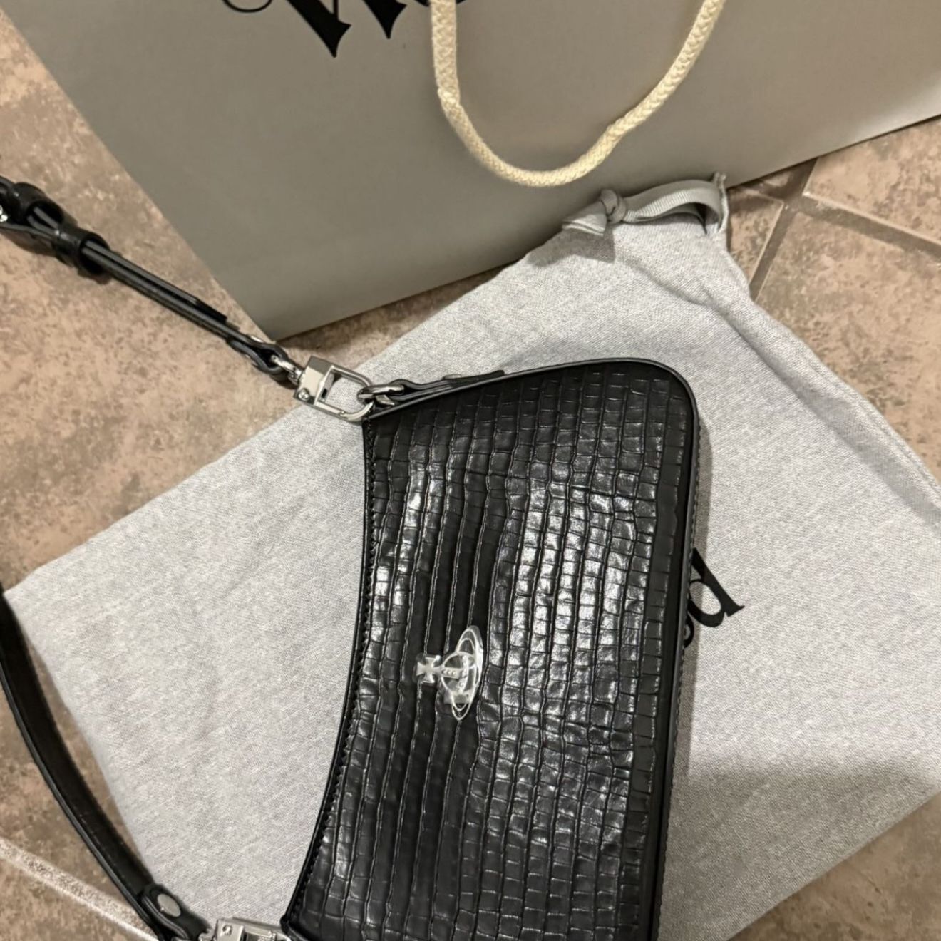 - Beautiful bag - can hold a iPhone 16 pro max. A small flat wallet - used for two events and would store in dust bag each time - lost original dust bag but stored in another dust bag - have original receipt as well - cost 598 original
