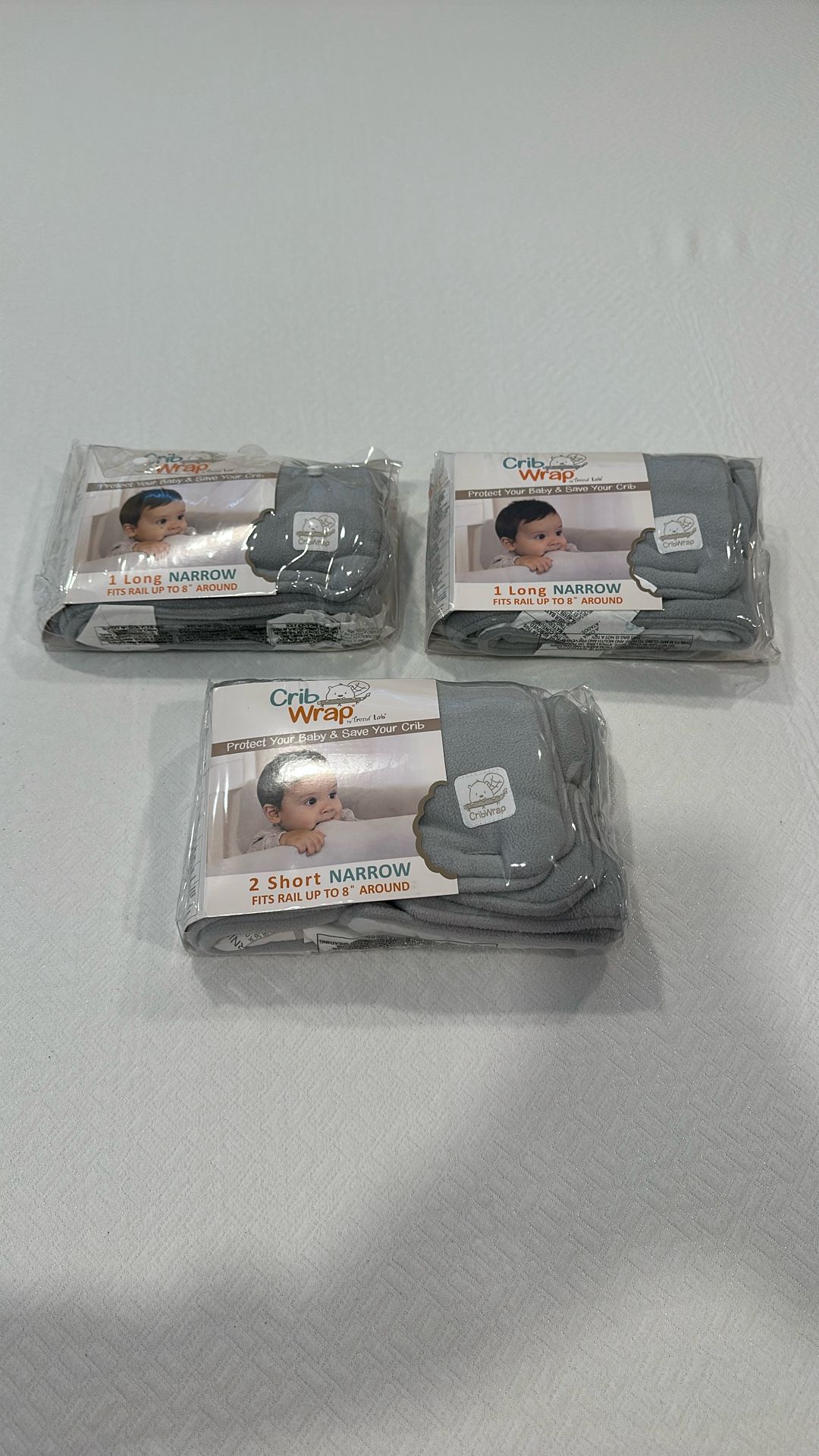 1 short narrow package (2 sides) and 2 long narrow package for total all 4 sides of the crib. All for $20