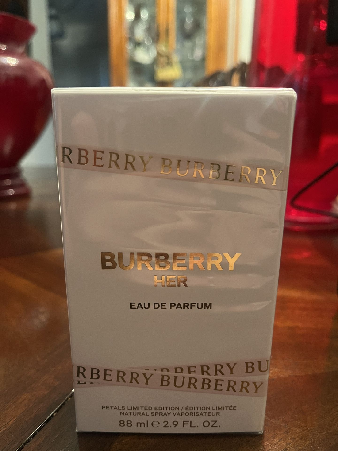 New! Unopened Burberry Her Eau de Parfum Petals Limited Edition, 2.9 oz.! Burberry Her Eau de Parfum Petals Limited Edition is a gourmand fragrance with a British twist. The dreamy and uplifting fragrance playfully combines the sweetness of crushed berries with floral notes of violet and jasmine. The petals used in this bottle are decorative