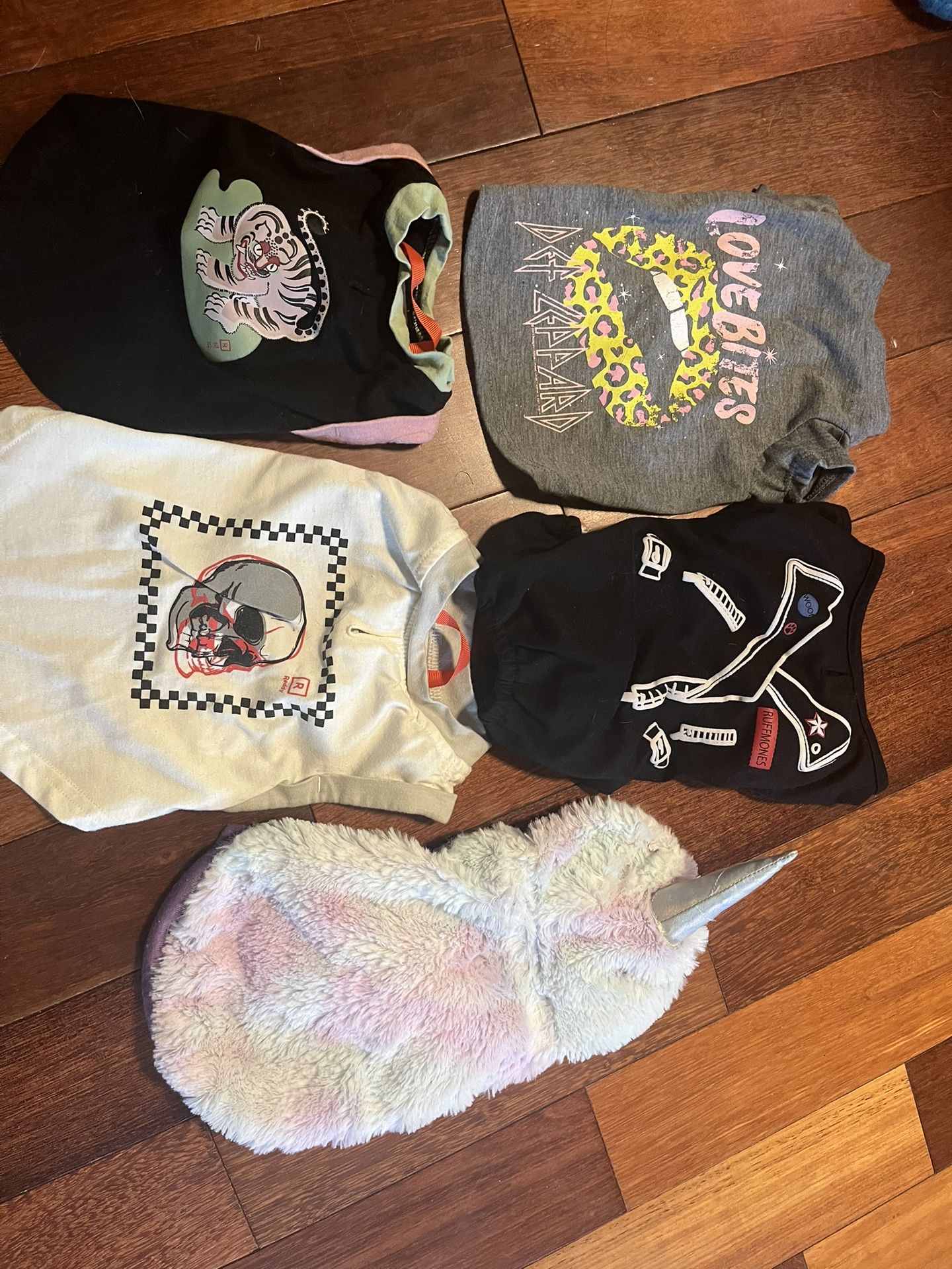 XS skull shirt XS Chinese dragon shirt XS love bites - Def Leppard shirt XS “ruffmones” costume XS unicorn costume