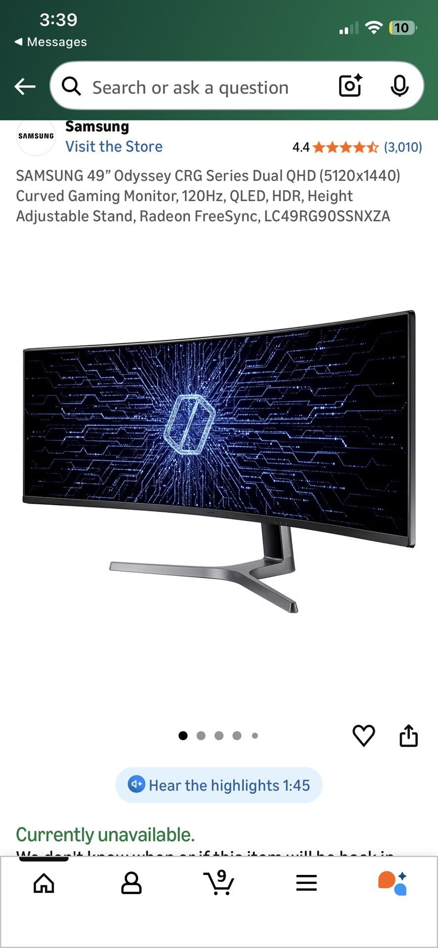 Samsung 49” Odyssey CRG Series Curved Gaming Monitor