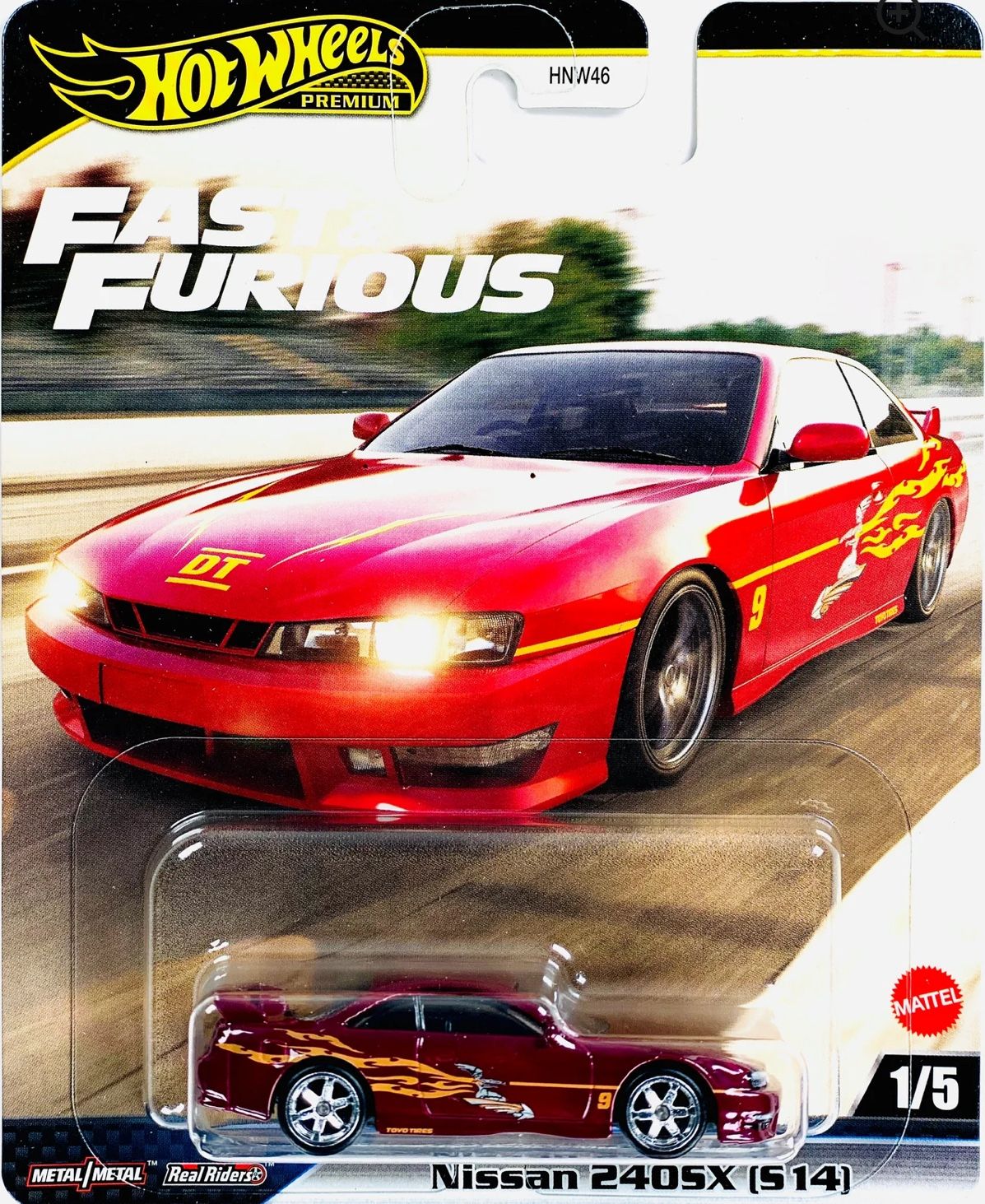 Mattel 2025 Hot Wheels π Premium Fast & Furious Nissan 240SX (S-14). Metal/Metal, Real/Riders, 1:64 Die-Cast Model. Color: Maroon, π.