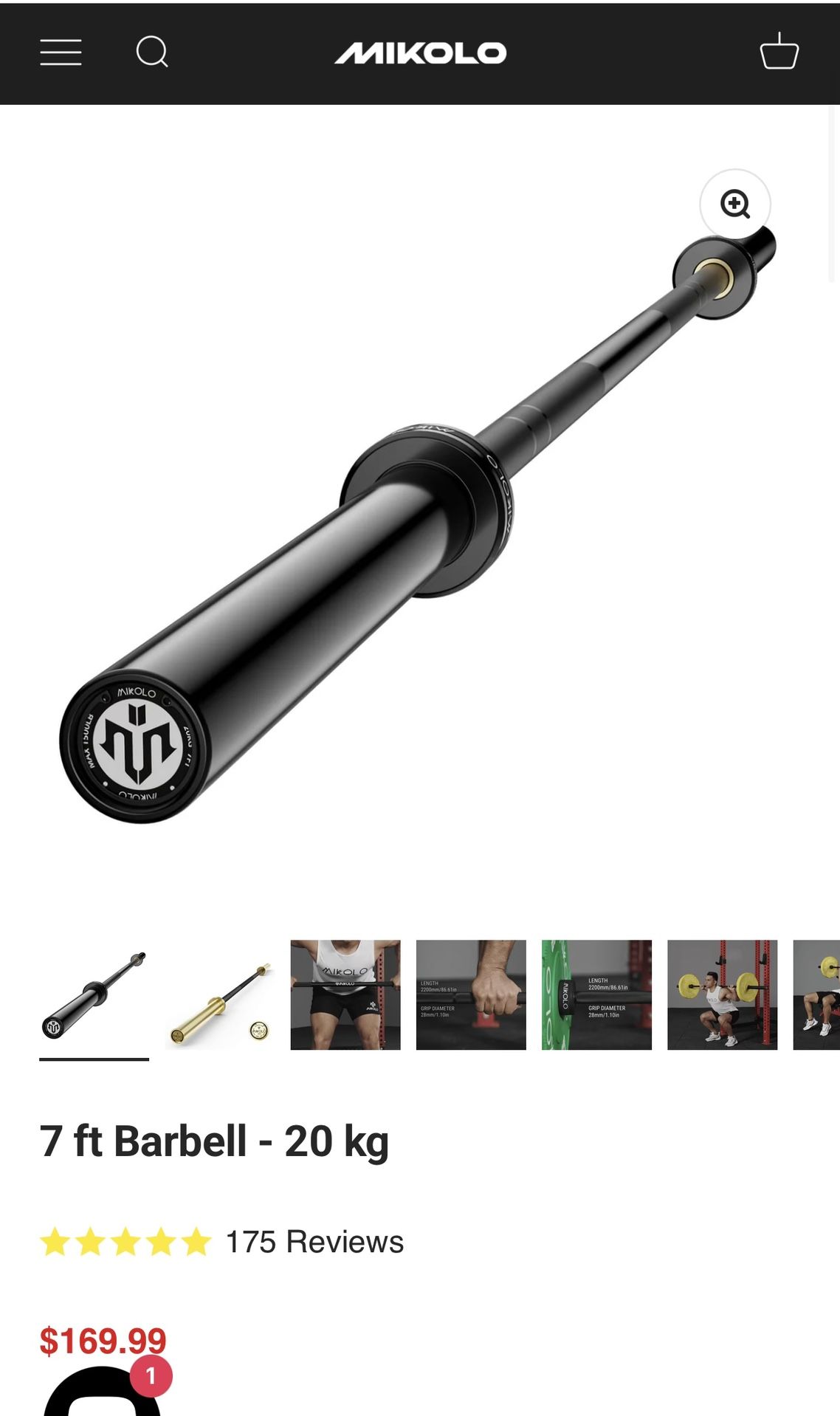 Mikolo 7ft Olympic Barbell, Barbell for Weightlifting and Powerlifting 45lb, Olympic Bar for 1500lbs Capacity, Weight Bar Fit 2" Standard Weights (249