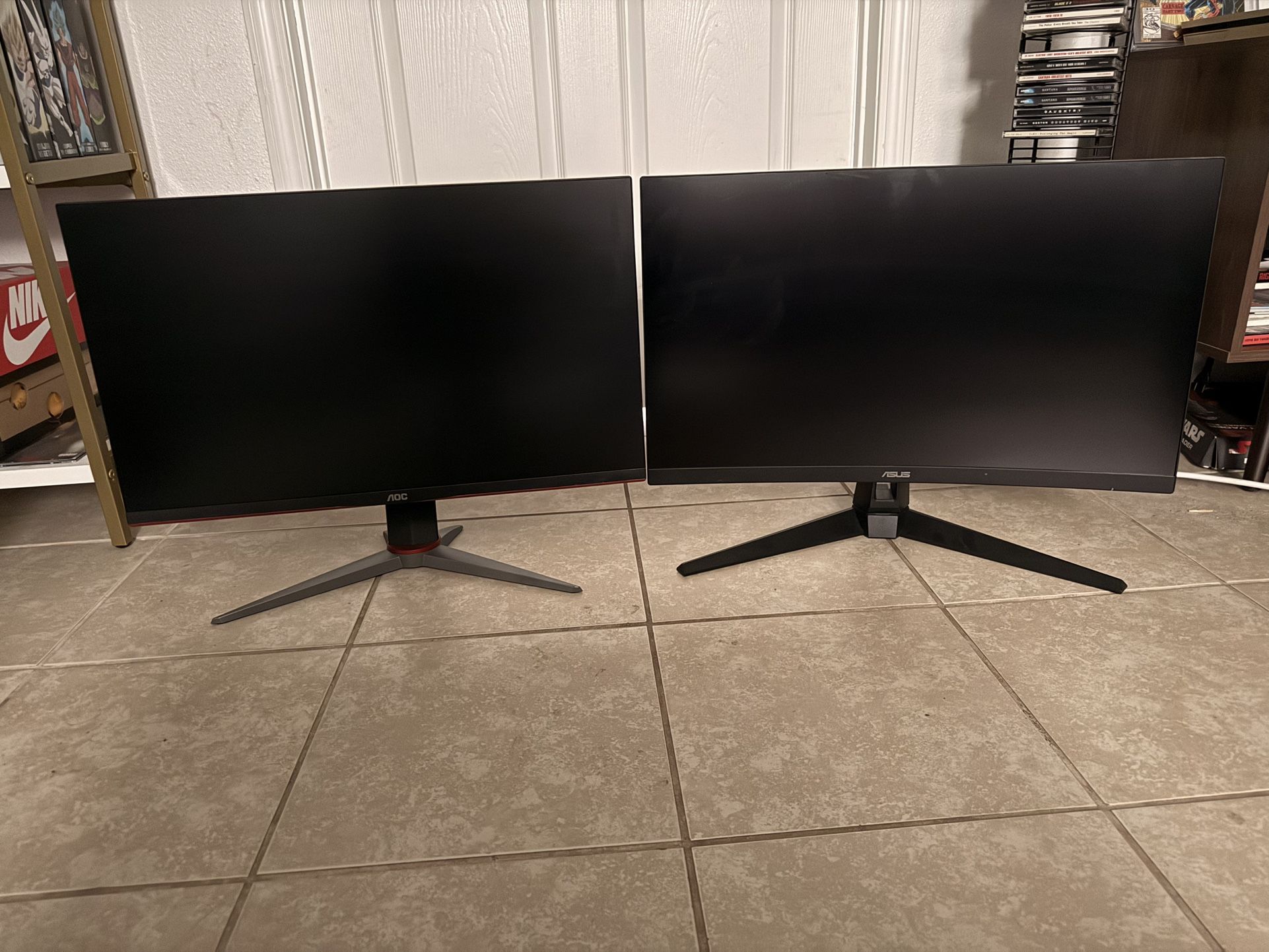 Full Details AOC 27’ 1080p 180hz Model 27G2 ASUS 27’ 4k 160hz Model VG27w Both come with power and hdmi cables