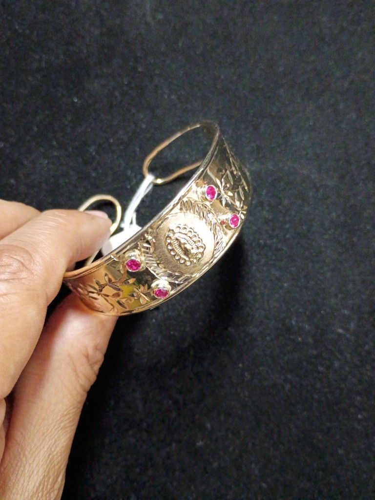 Virgin Mary 14 kt yellow gold 16.6 grams Red color stones