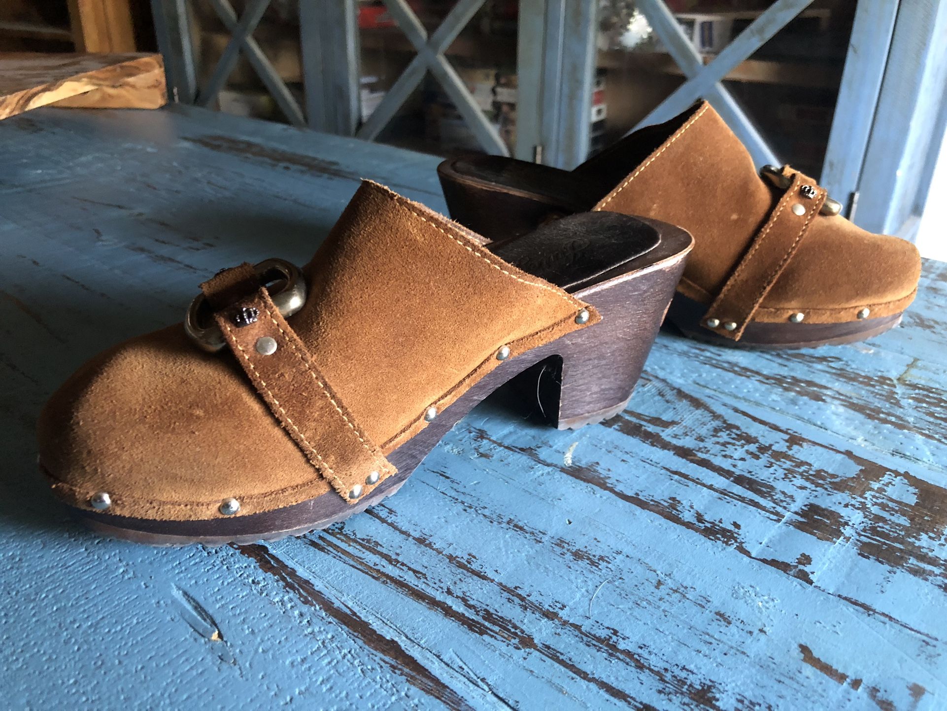 Juicy Couture Classic Brown Suede Clogs Mules(6.5 Made In Italy