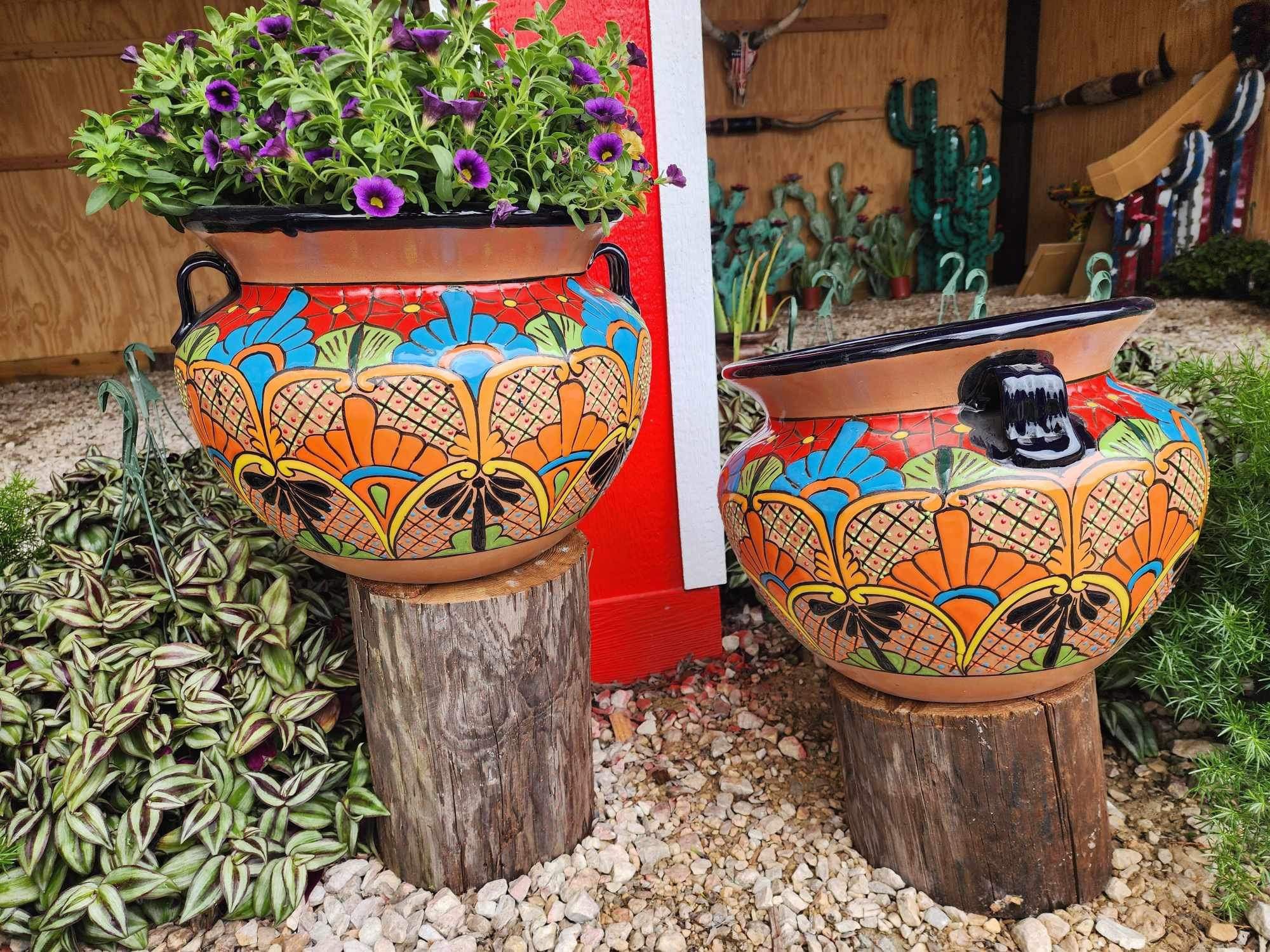 New Mexican Pottery! Dimensions are 14 inches tall, 16 inches wide. $55 each. We can deliver locally. We also have over 200 plants 🪴 in baskets at $14 each! We’re located in Princeton, TX. Send me a message! Let’s get your home ready from spring! All forms of payment accepted!