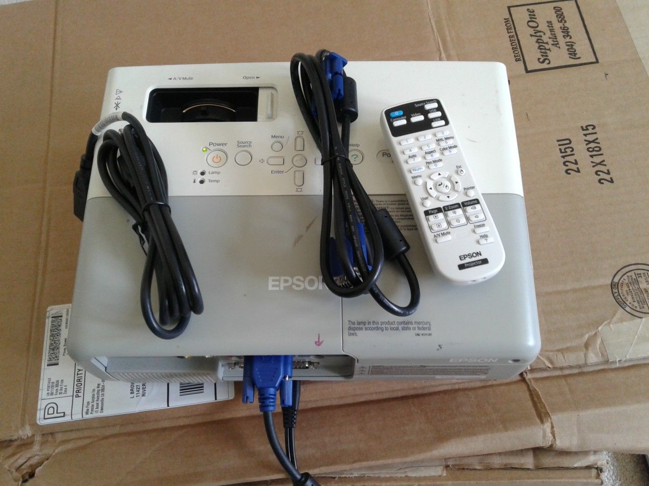 Epson projector, excellent picture, with remote and cables, like new bulb