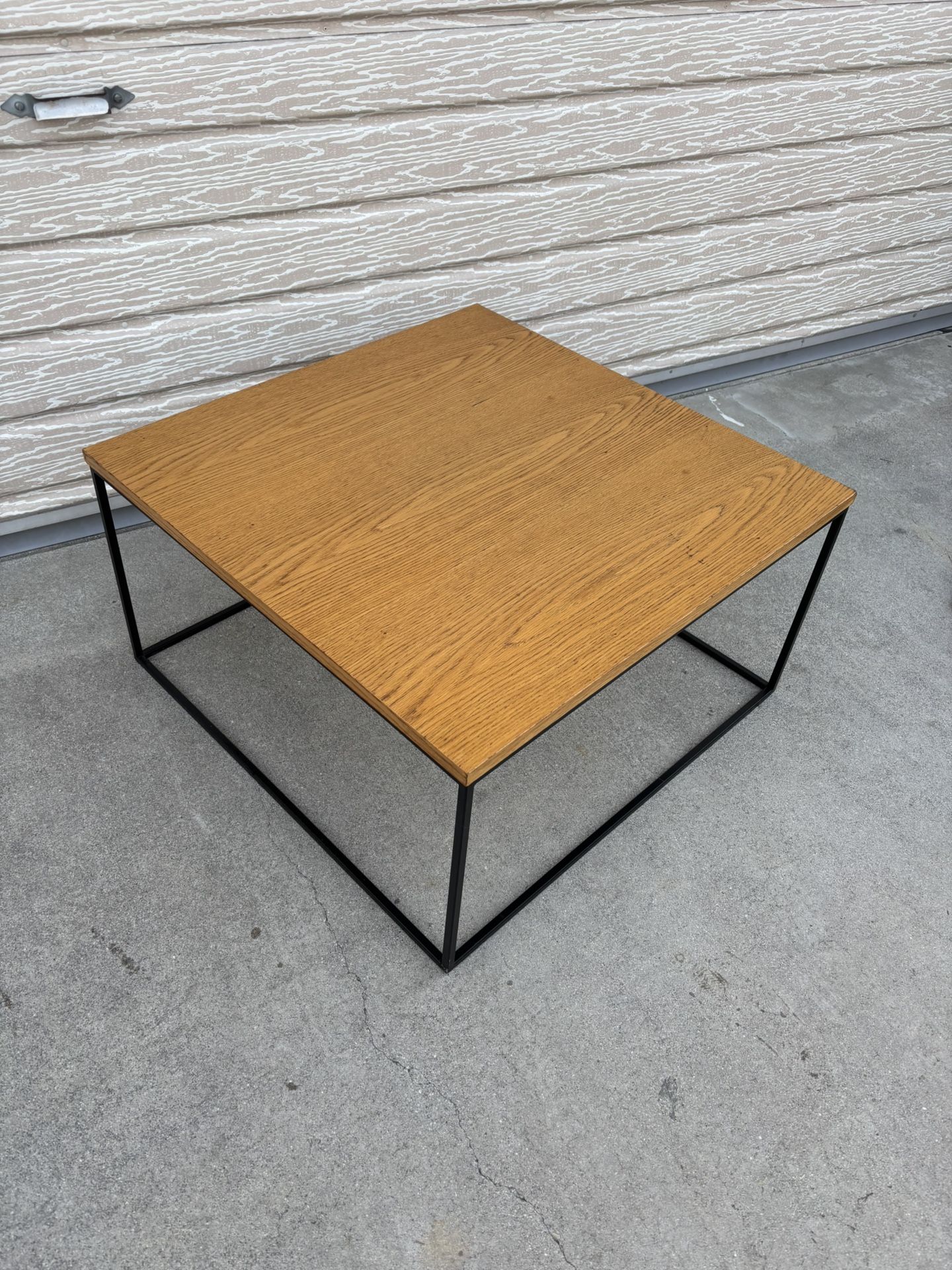❗️Read All ⬇️ Wood top square coffee table. 29 1/2” x 29 1/2” Black metal base. Light brownish wood. There are a few scratches hard to see and some raised grain very hard to notice. Good used sturdy condition. Decor for modern to mid century modern. Simple design. Pick up in W Van Nuys 91406 Do not reply unless you want to buy it and communicate in a timely manner. Ty CASH only