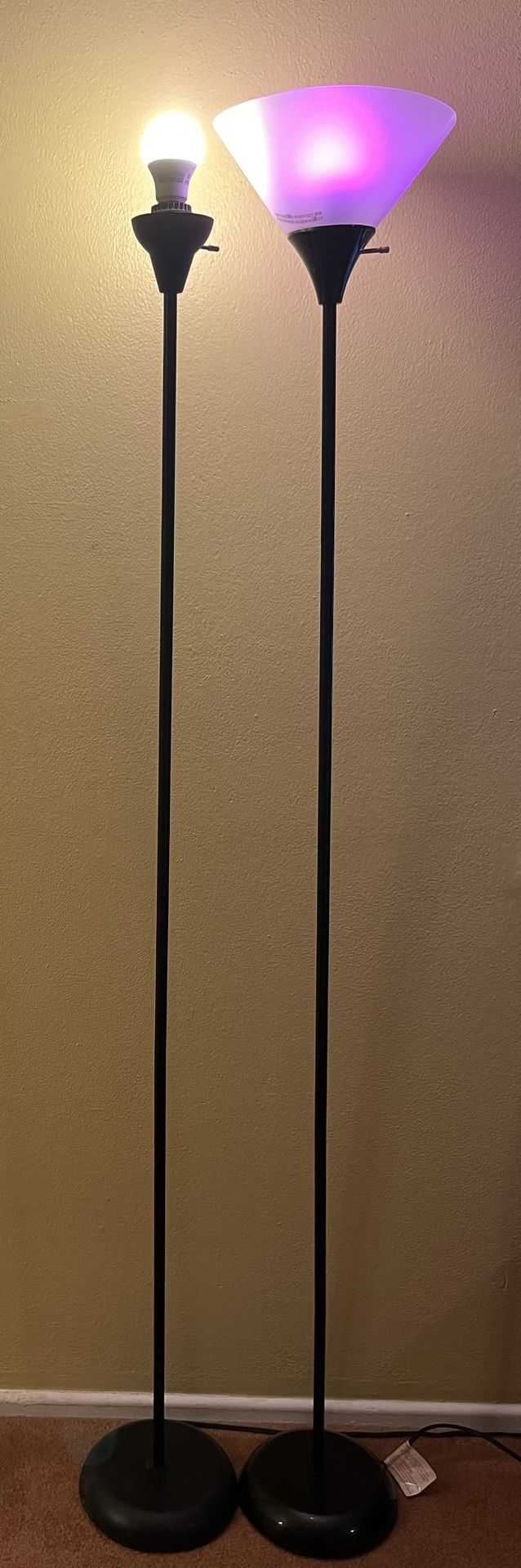 (2) Floor lamps. Approx 72” tall. One missing the shade cone. $10 each obo.