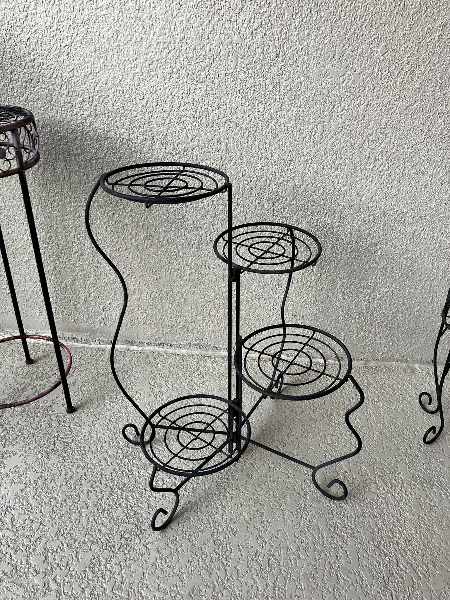 Downsizing Purge! For All. 26.5” tall 4-Tiers folding stand, great shape considering it’s been outside patio. 30” tall paint purple, Rustic charm from being outside, paint falling off in areas. 18 1/4” tall 2-tier, great shape considering it’s been outside patio. **pick up at Flora Ridge Condominiums, Kissimmee 34741, by The Loop mall**