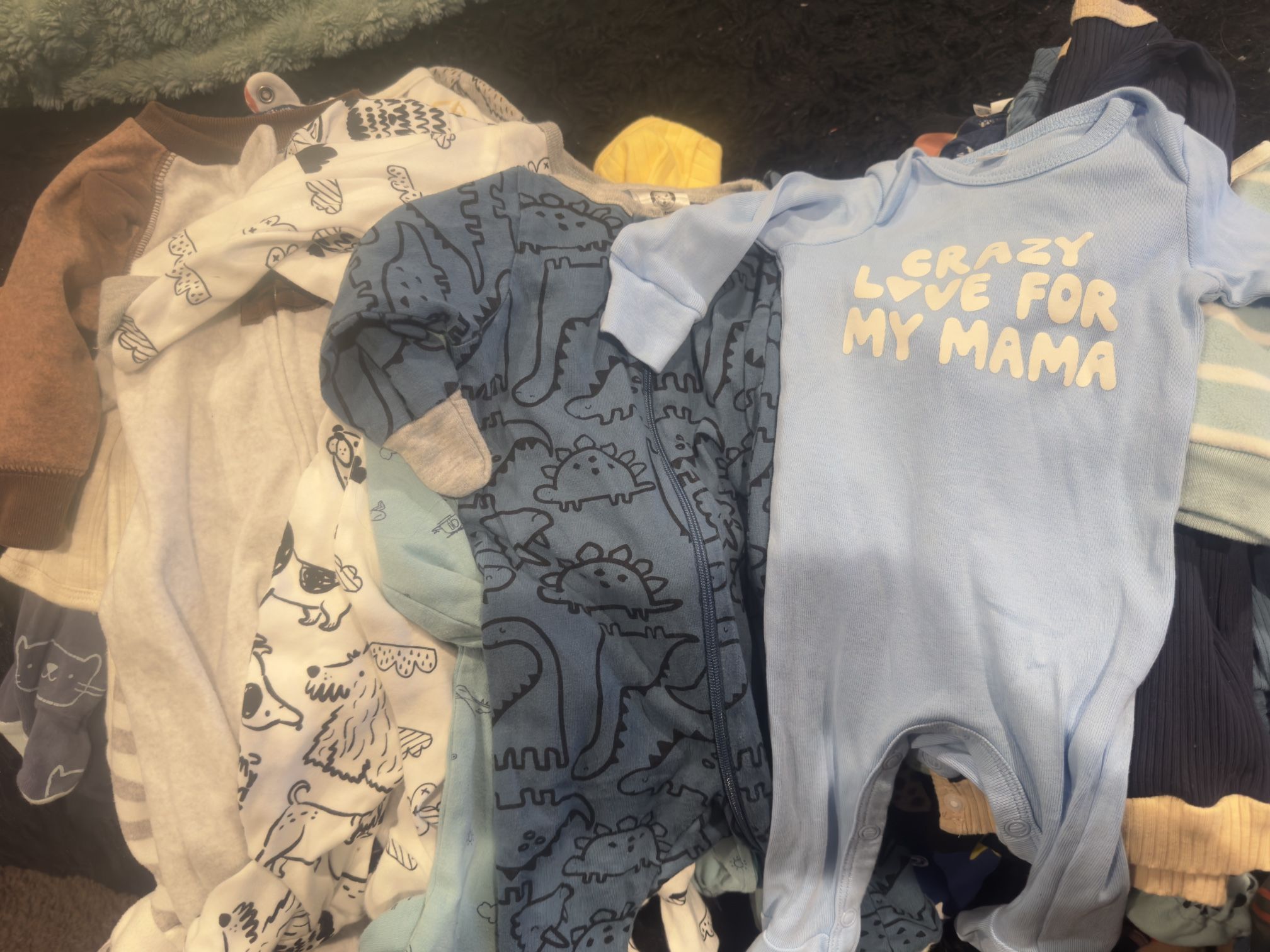 I have 41 pairs of onesies zip up with the feet and 29 onesies and 11 newborn pants take all for $50